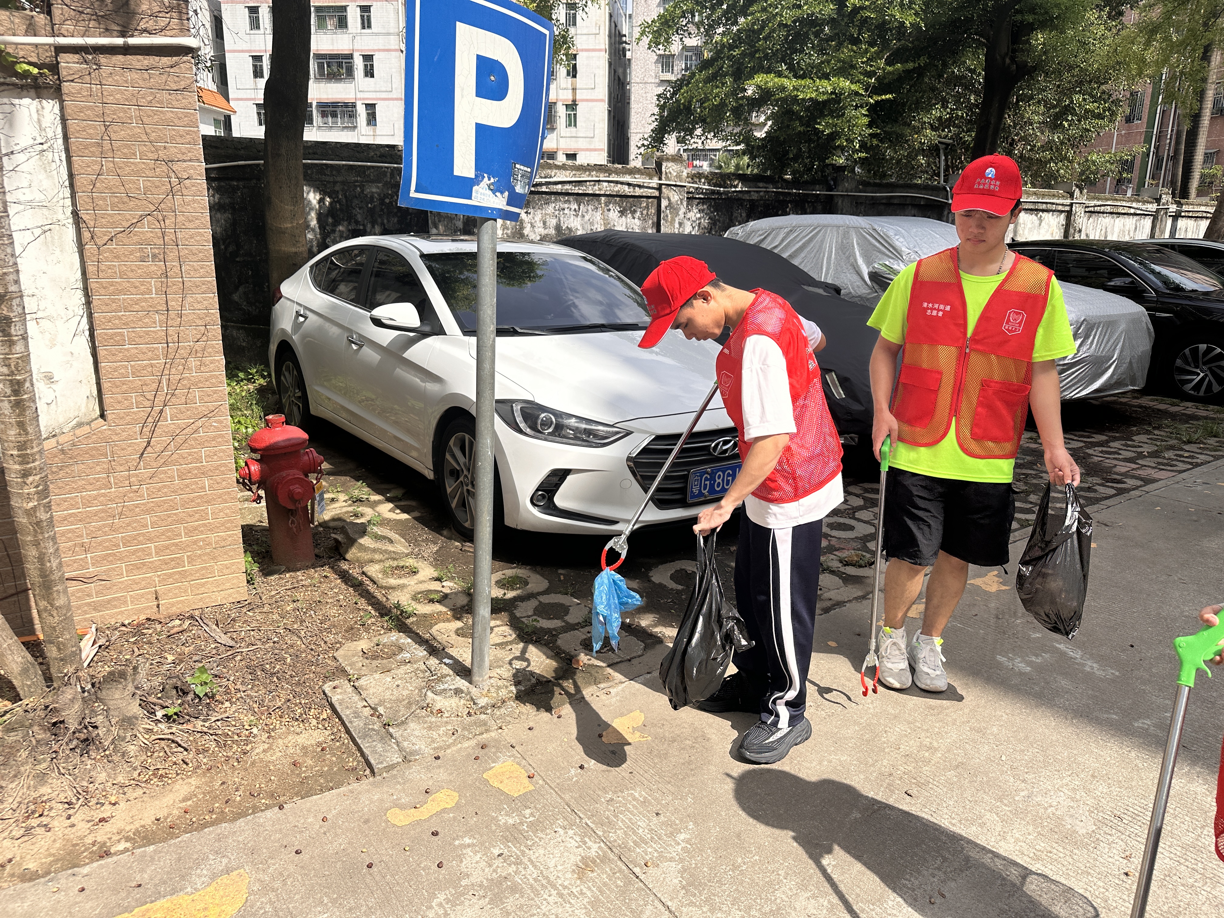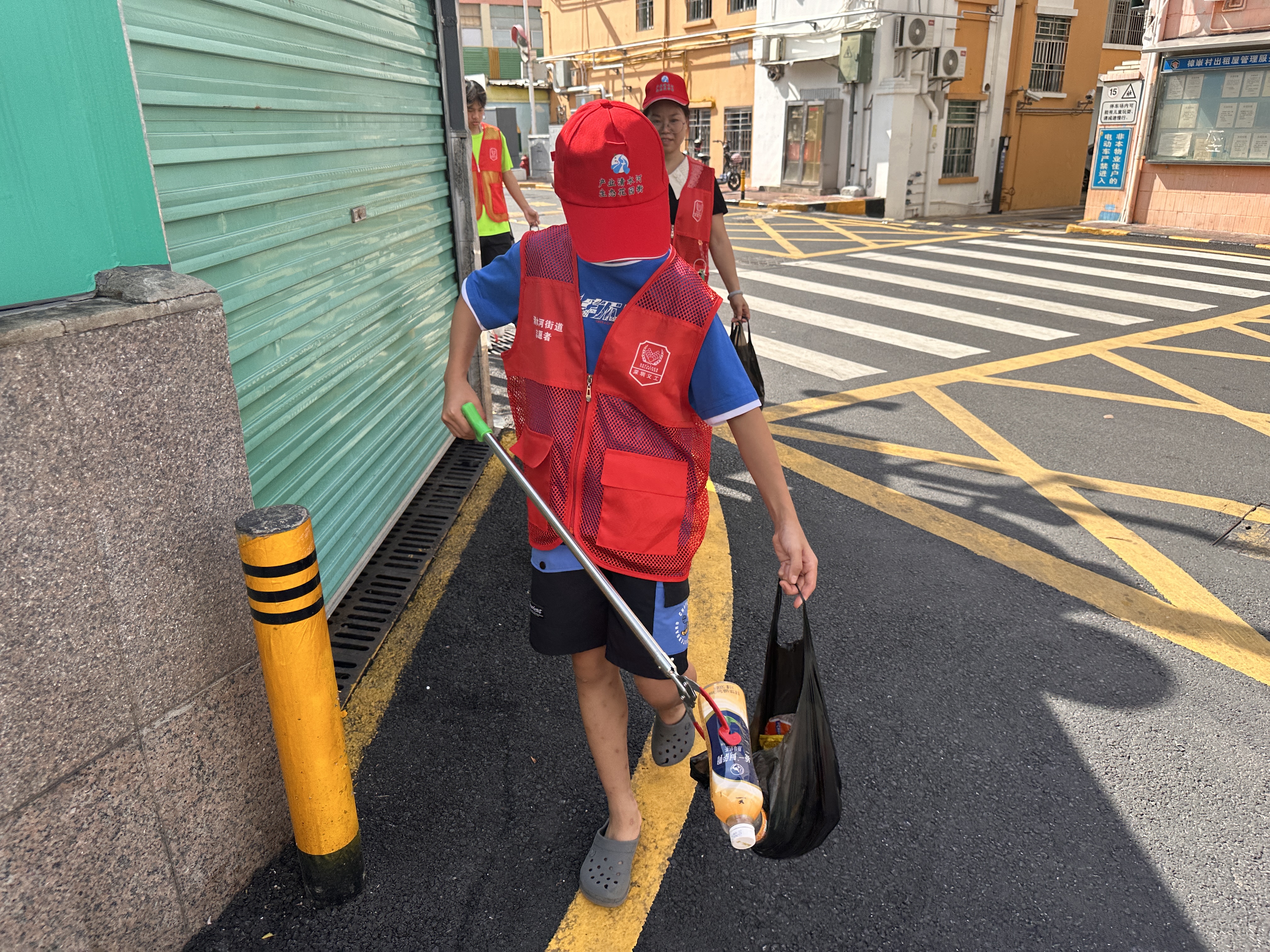 2024年8月12日下午,在草埔西社区党委的支持下,草埔西社区新时代文明实践站社工开展国际青年日主题志愿活动,组织社区青年志愿者参与社区垃圾清捡服务。