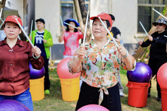 此次运动会参与者分为两组进行竞赛,比赛设置了龙走蛇形、赶鸡、珠行万里、节奏大师等趣味十足的项目。在 “龙走蛇形” 项目中,随着口令响起,队员们齐声呼喊着口号,步调一致地穿梭在障碍物之间。现场气氛瞬间被点燃。“赶鸡”项目,队员手持葵扇扇动“大公鸡”气球来回追赶的模样引得大家笑声不断。而“珠行万里” 项目则将团队协作精神体现得淋漓尽致,两组队员屏气凝神接力运送乒乓球。最后的 “节奏大师” 环节,音乐声、击掌声、欢笑声交织成一片,两组队员全情投入,将现场氛围推向高潮。
