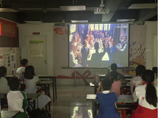 活动伊始,社工为孩子们播放《建党伟业》的片段。银幕上,身着长衫的先辈们在灯光下秘密集会,后转移至南湖红船继续议事,“中国共产党万岁” 的呐喊声铿锵有力。孩子们瞬间安静下来,目光专注地追随着画面。影片结束后,社工进一步讲述了中共一大的历史细节,从1921年7月23日中共一大在上海召开,到因受到干扰转移至浙江嘉兴南湖的红船继续举行,详细介绍了会议的背景、过程以及重大意义。