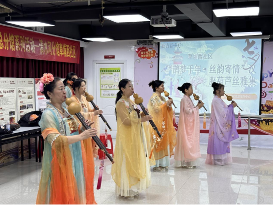 罗湖区清水河街道草埔西社区开展“鹊梦 千年 丝韵寄情”汉服葫芦丝雅集活动