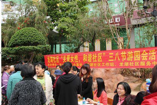 2014年3月6日上午,龙湖社区举行“关爱女性·和谐社区”三八妇女节游园会,活动吸引了数百名居民参加。游园设有投篮、抛球、夹玻璃球、法律知识有奖问答等趣味小游戏以及宣传创建平安社区知识介绍,让参与活动的居民玩得不亦乐乎的同时亦了解到共同建设和谐家园,携手创建平安罗湖!