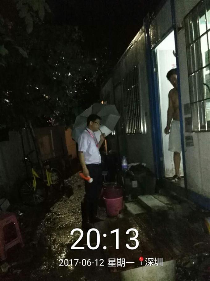 今年2号台风“苗柏”已于6月12日晚登陆深圳,给全市带来强风暴雨天气,为确保辖区临时工棚居住人员的人身安全,防止台风天气发生安全事故,龙湖社区安排值班人员,对居住在临时工棚的工人进行劝导,安排工人们前往安置点避险。工作人员进行挨家挨户的劝导、劝说,讲解台风天气的严重性及临时工棚所具有的安全隐患,工人们也积极配合社区安置工作,在工作人员的指引下,开始安全、有序的撤离,大约20分钟后,辖区临时工地的工人们均撤离到临时安置点,有效地预防台风天气安全事故,保障了辖区群众的生命安全。