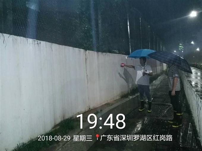 当晚,巡查人员提前排查安全隐患,对重点区域拉设警戒线,防止出现人员伤亡。随着降雨量增大,值班人员对辖区边坡围墙及水浸灾害隐患点开展巡查排查,重点检查电力设施是否存在安全隐患、铁皮房是否有人居住、主次干道是否存在由于水浸导致交通堵塞等问题,同时加强低洼地带易涝点的巡查力度,对辖区内的排水井盖进行实地查看,确保雨水顺利下排,最大限度避免内涝的产生。值班人员还到各小区物业了解他们防暴雨措施,督促物业管理员加强巡逻戒备,提醒居民提前做好处理突发事件的准备,减少外出,如有突发情况,及时与社区工作站联系,确保暴雨天气无隐患、无事故。
