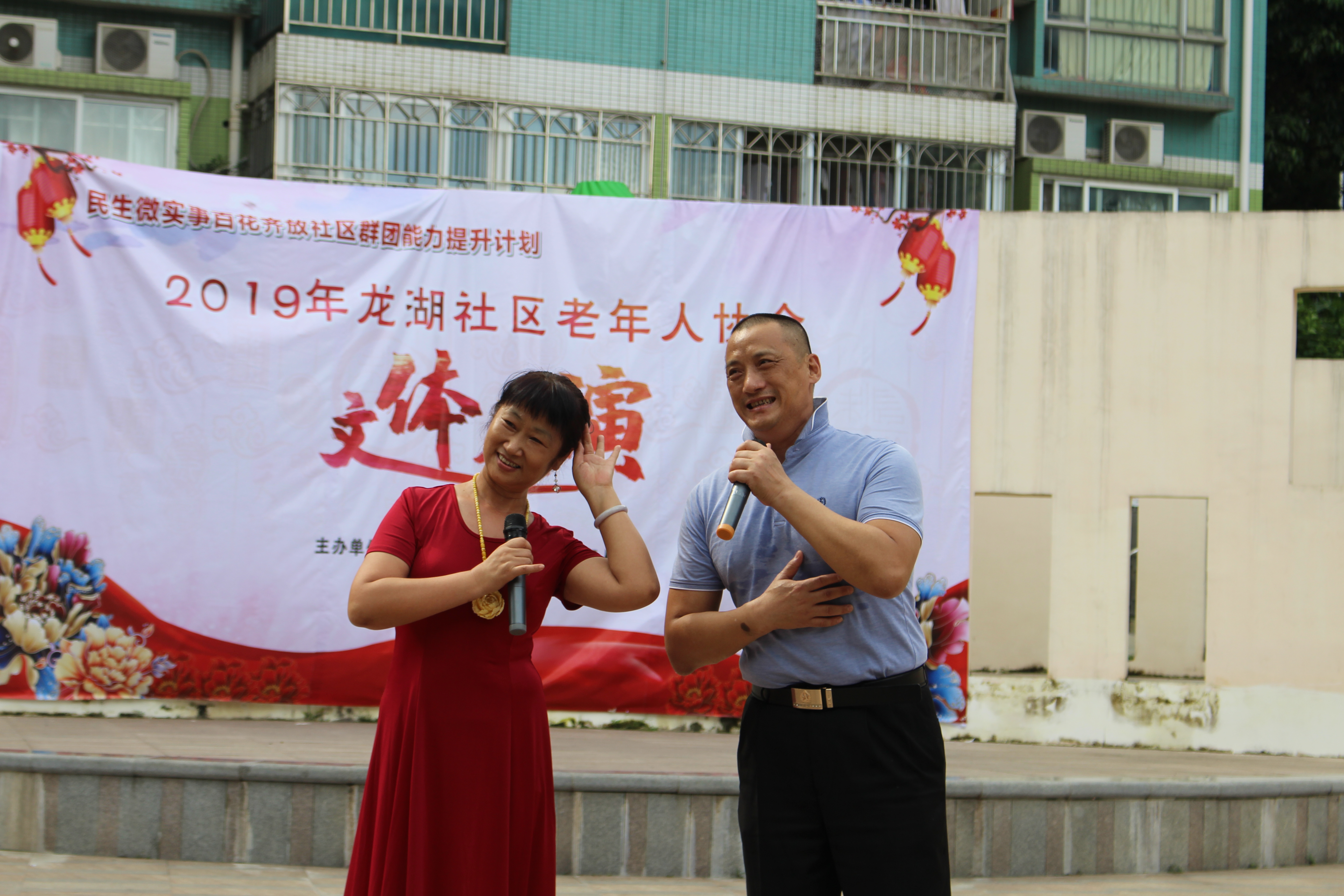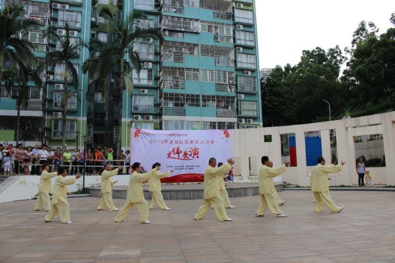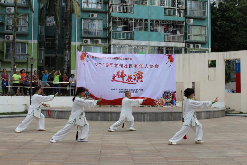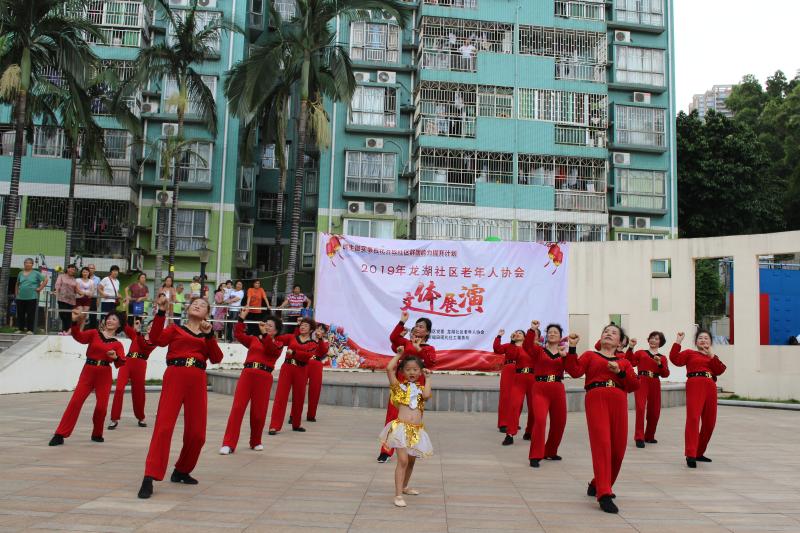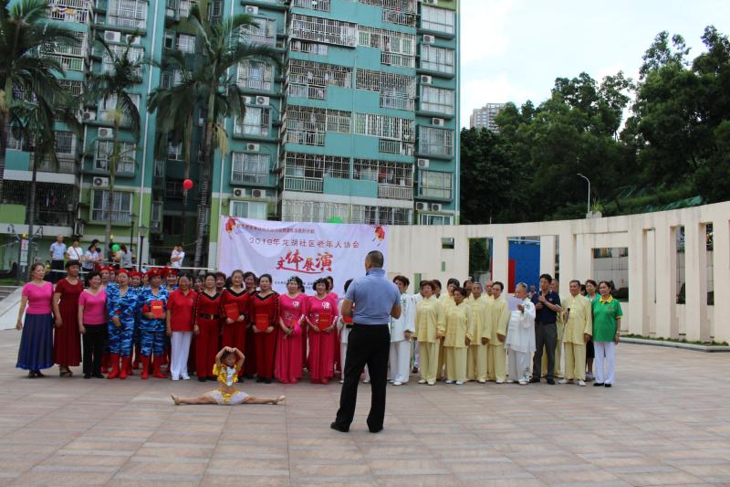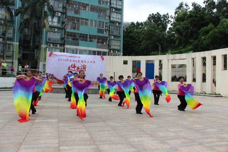 为促进社区老年人事业的发展,2019年在社区党委的支持下,福田现代社工事务所设计的民生微实事项目“百花齐放社区群团能力提升计划”邀请龙湖社区老年人协会加入服务。在项目的支持下龙湖社区老年人协会于7月15日下午在青湖山庄文体广场顺利举办百花齐放-社区老年人协会文体展演活动,70位老协会员参与了表演,活动收获了居民好评。