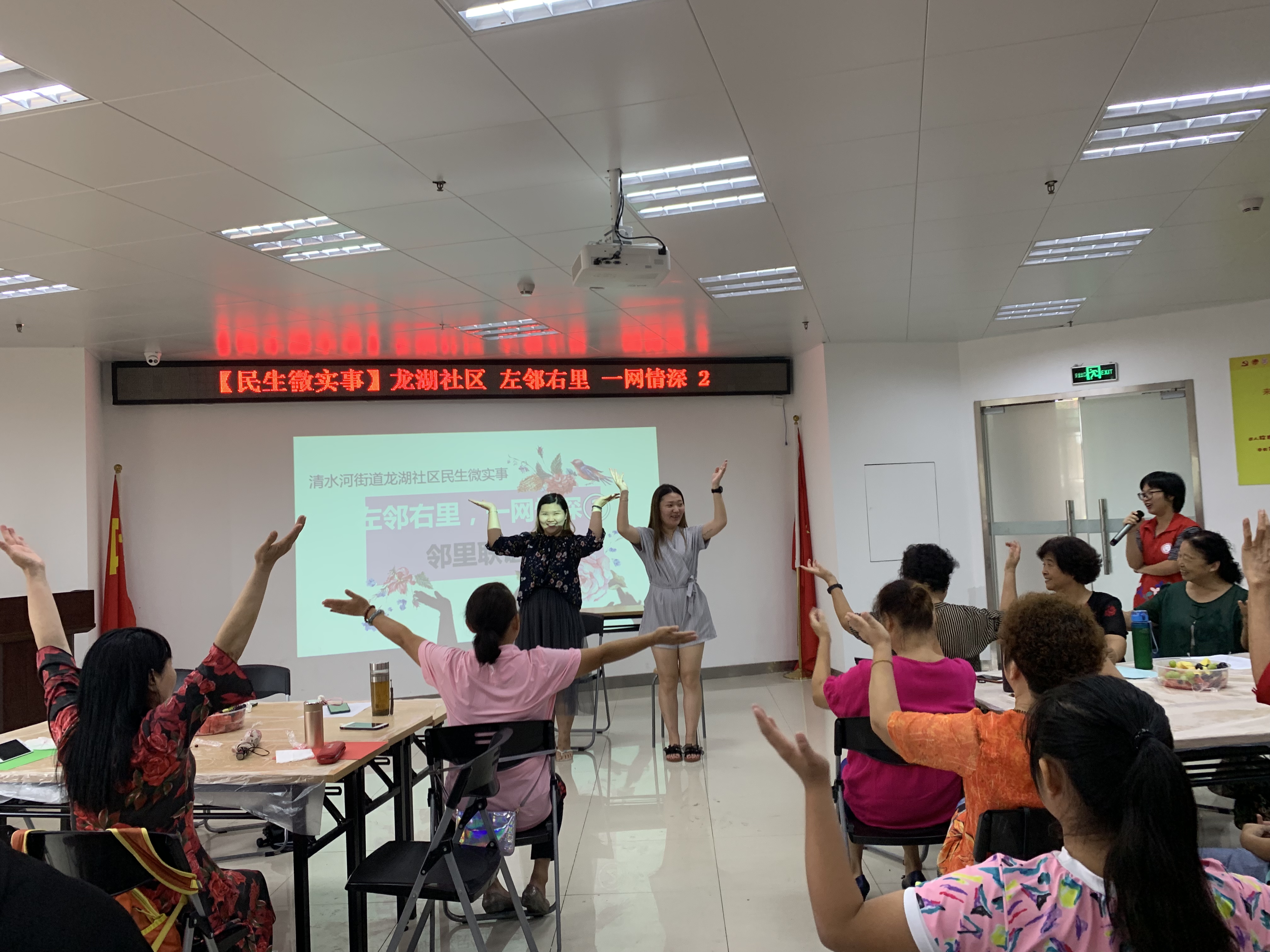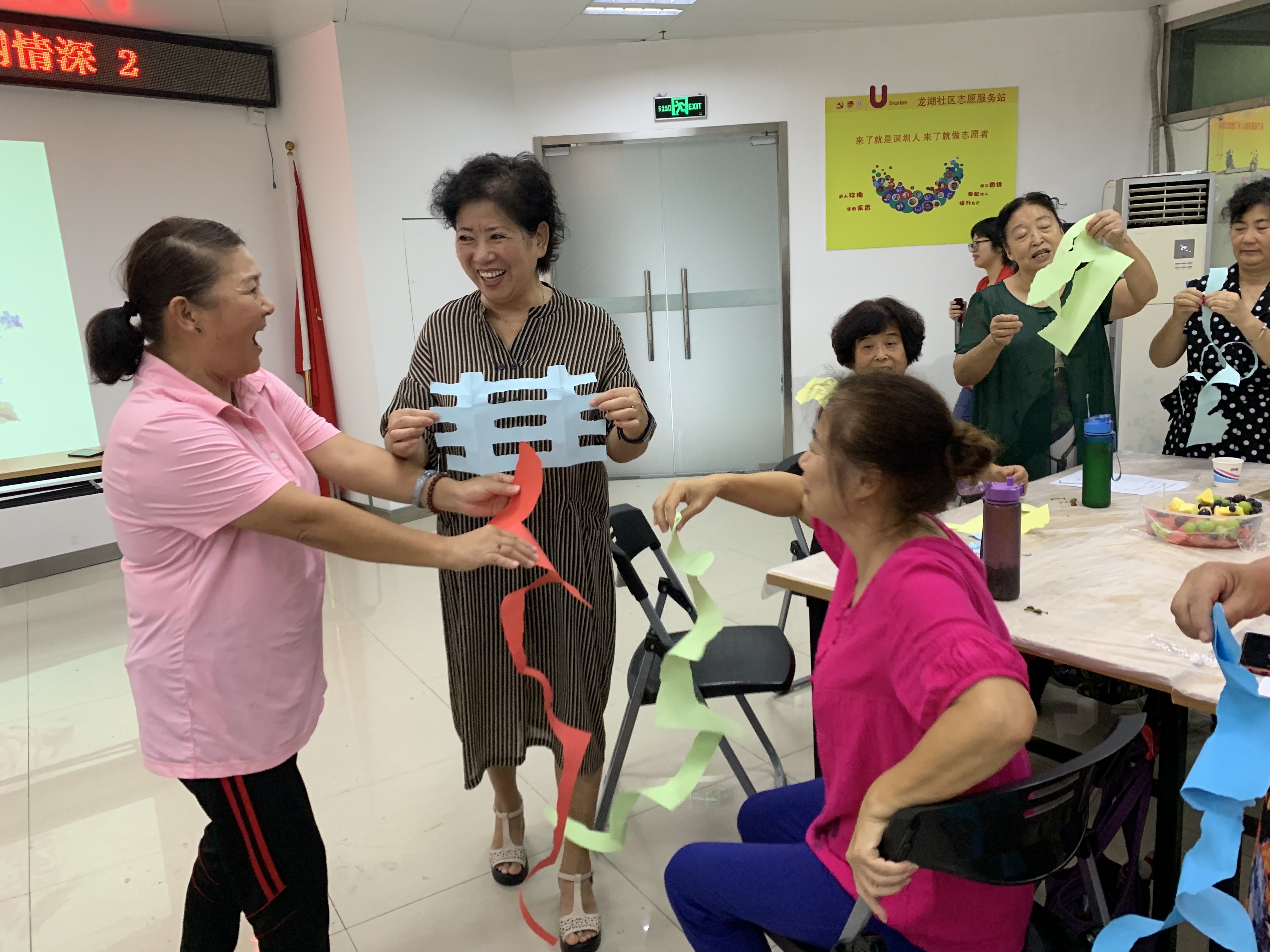 当天社工用大家耳熟能详的儿歌《宝贝宝贝》开场带领大家进行律动热身,“两只老虎爱跳舞,小兔子乖乖拔萝卜”大家边唱边跟着做动作,不时爆发出阵阵笑声,瞬间现场气氛达到高潮。随后的自我介绍就比较顺利了,大家根据要求创造了自己的“小伙伴”并带着自己的“小伙伴”去介绍给邻居认识,也认识邻居和邻居的“小伙伴”。李阿姨的“中华龙”、喻阿姨的“竹叶青”、洪家小朋友的“大磁铁”都给大家留下了深刻的印象。