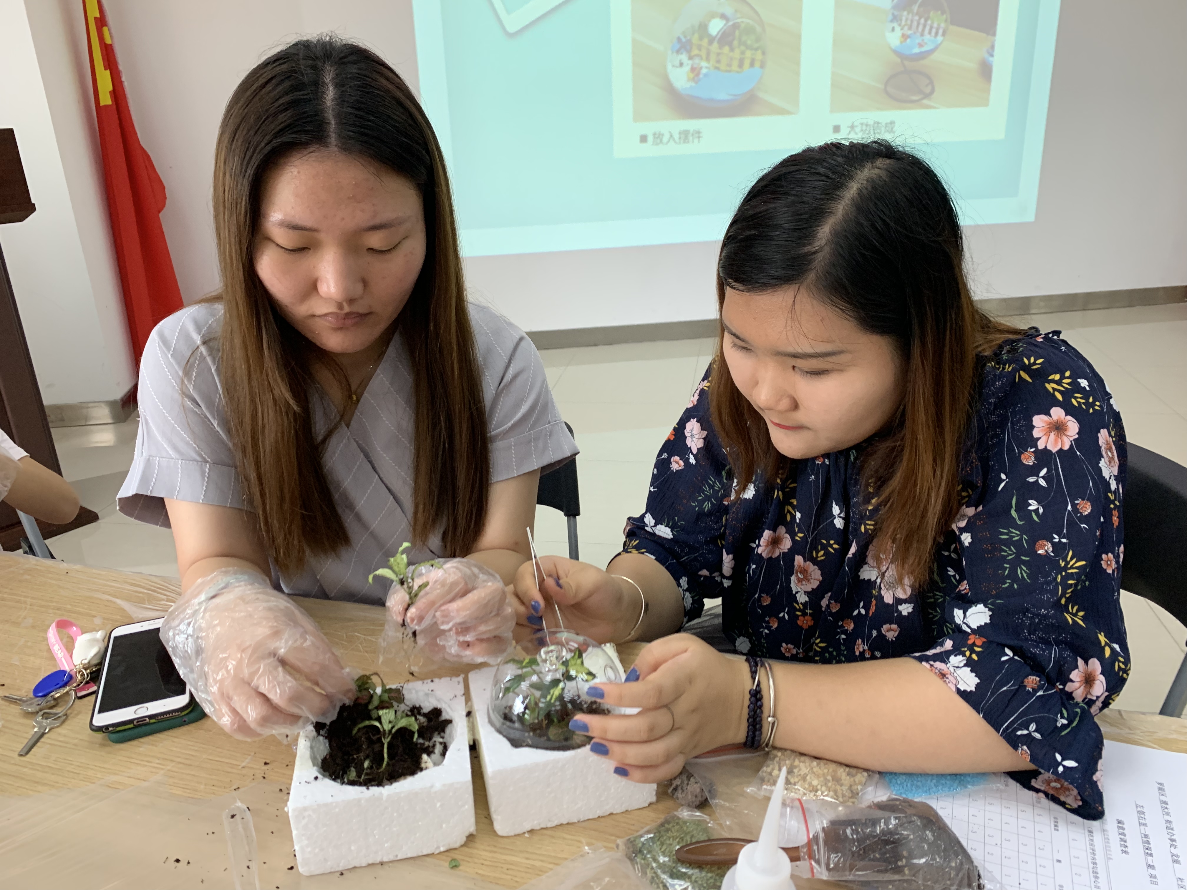 进入手工主题球型园艺绿植环节,大家都很兴奋雀跃,听着志愿居民老师的讲解了解材料及制作注意事项。制作过程中,邻里互相合作互相夸赞,完成了自己心中美丽的“小花园”。