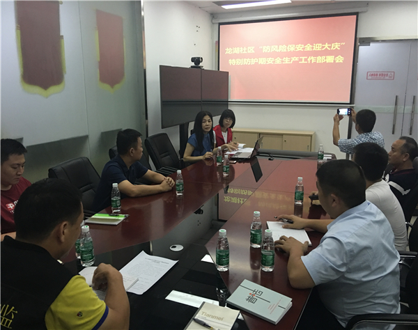 为保障特别防护期间辖区安全生产形势持续稳定,进一步遏制事故发生。8月20日,清水河街道办事处副主任、龙湖社区第一书记刘思源到辖区召开“防风险、保安全、迎大庆”特别防护期安全生产工作部署会议,龙湖社区党委班子、社区工作人员以及辖区物业管理负责人参会。