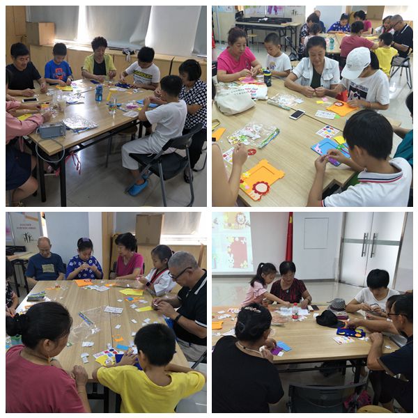 活动在欢快的“健康快乐热身操”中拉开帷幕,首先社工带领大家了解了重阳节的来历和习俗,并向大家讲解了制作立体手工相框的步骤、方法和要点,祖孙一起齐心协力互相协作,很快一个个漂亮的立体相框就完成了,孩子们把精心制作的相框作为礼物送给了自己的爷爷奶奶和外公外婆,并祝他们节日快乐!还给了他们一个深情温暖的拥抱;孩子们用他们温暖的小手给长辈们按按头、揉揉肩、捶捶背,帮长辈们穿衣服、喂长辈们吃水果,体验一下长辈们照顾他们时的辛苦,用最温暖贴心的方式表达了他们对长辈的关爱,在场的老人们都感受到了来自孩子们的浓浓爱意,脸上幸福的笑容是最好的见证,他们都说水果吃在嘴里,甜在心里。
