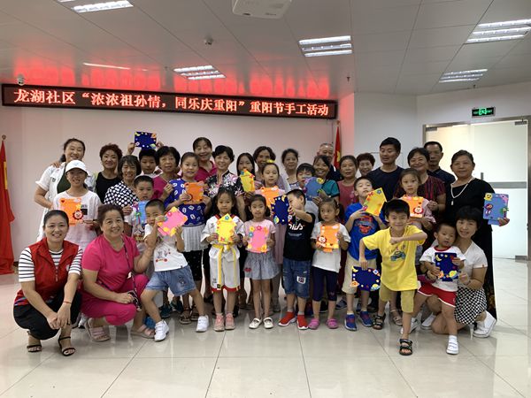 为弘扬中华民族的传统美德,发扬尊老敬老、爱老助老的优良传统,让孩子们懂得去尊重关爱身边的每一位老人,懂得感恩,让尊老、敬老的中华美德在孩子们心中传承,龙湖社区于2019年9月28日上午在社区党群服务中心活动室开展了“浓浓祖孙情,同乐庆重阳”重阳节DIY手工活动,有25对社区祖孙参加了本次活动。