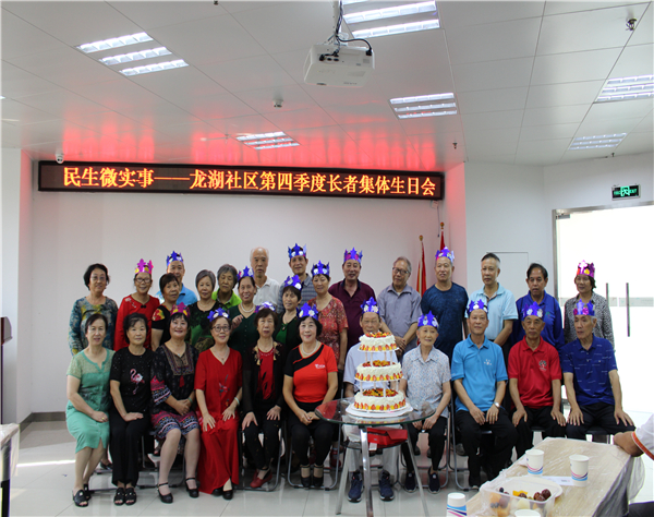在龙湖社区党委的领导下、民生微实事的项目资金的赞助下,2019年10月24日上午在龙湖社区党群服务中心的活动室第四季度长者集体生日会如期举行。