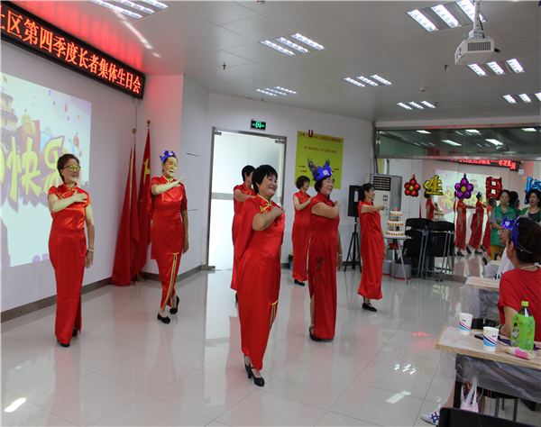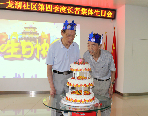 龙湖社区的长者生日会是充满温暖的生日会,本季度生日会有87位长者参加,想想场面都有点震撼,在活动现场,寿星们准时来到社区签到,带上寿星帽,然后在工作人员的引领下就坐。活动开始本季度生日会的寿星们还准备了三个节目为大家表演庆祝,开场舞《中华孝道》就给大家带来了视觉盛宴,后面杨叔叔和肖叔叔的个人独唱,那真的是让大家禁不住竖起了大拇指,叫好声络绎不绝!舞蹈《祝寿歌》真是应景,后来听说是特意为生日会的寿星们准备的。龙湖社区真的是卧虎藏龙的地方啊!大家一边吃着水果点心一边看着表演,活动现场到处洋溢着欢声笑语。最后的重头戏就是唱生日歌、许愿、吹蜡烛、分享蛋糕,我们邀请了本次最年长的两位叔叔为大家切下蛋糕第一刀,随后工作员把蛋糕都分好送到每位长者手上,大家一边吃蛋糕一边谈心,不时传出欢声笑语。