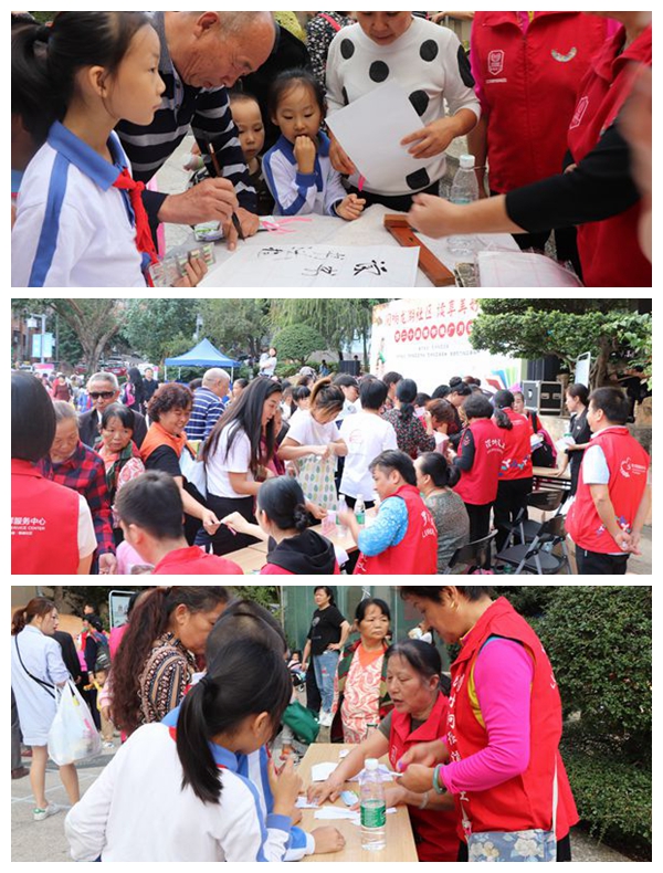 随后,在现场的“文化体验区”设置了“书法体验”、“成语填字”和”书声朗朗”三个活动区域。看!那一条条排长龙的队伍饱含着龙湖社区居民们的学习热情,大家在游戏中感受快乐,在快乐中学习知识。