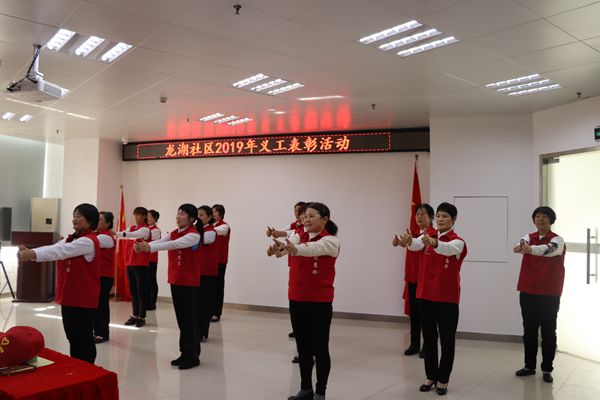 活动当天,邀请了70名优秀义工到场给予表彰,社工为大家定制了每人一顶义工帽还颁发了荣誉证书。2019年我们社区的义工们收获着也付出着,社区义工的队伍也在积淀与服务中不断壮大,这一年当中我们有太多的回忆与感动,有太多进步与成果。最后,龙湖社区15位义工给大家带来了手语舞“一起走”, 大家在感动和欢快中度过,活动让我们的义工伙伴更加贴近更加团结,龙湖社区义工队伍更加有凝聚力和归属感。