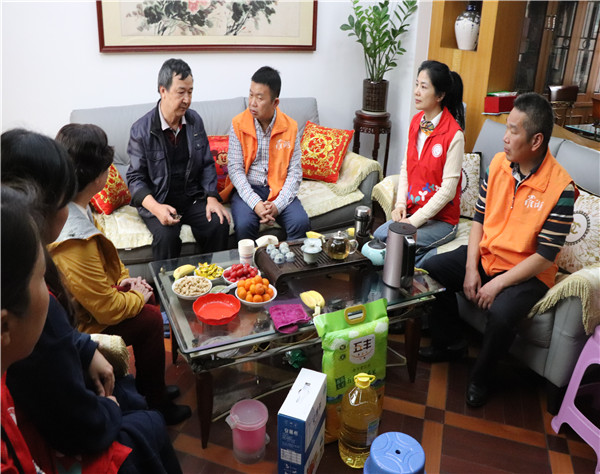 刘思源一行来到老党员家中看望慰问,与他亲切交谈,了解目前的生活情况和身体状况,并鼓励他保持乐观的心态,积极配合药物治疗,同时叮嘱社区党委做好日常帮扶,切实困难找党委帮助。
