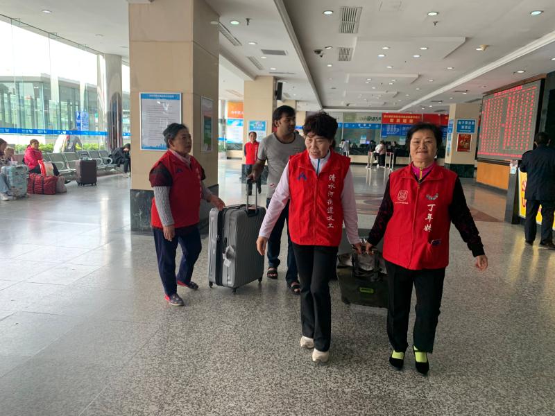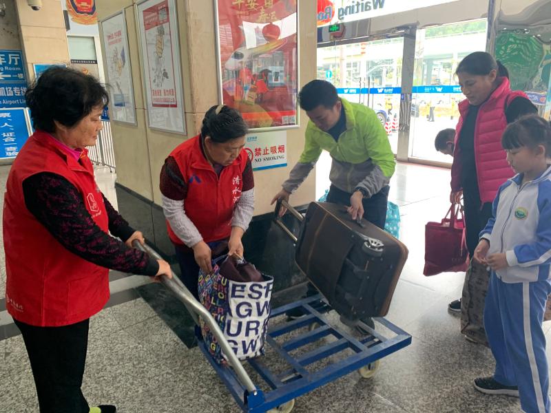 虽然天气较冷,但在服务中,大家看到返乡乘客提着大包小包都主动热情的搭把手帮忙。指引带路以及陪伴他到上车为止。这边社工看见有对父女拿着三件行李,父亲的脚行动不便,也赶紧调动义工前来协助。一位独自带孩子返乡过节的妈妈在义工的协助下才可能去了一趟洗手间······