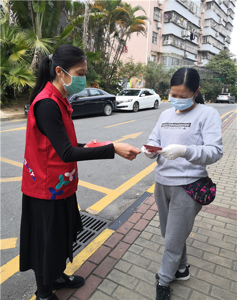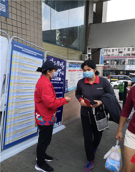 工作人员在小区各测温点派发《反家庭暴力法》宣传手册,把涉及女性群众切身利益的法律知识送到她们手中,同时鼓励广大女性朋友学法、用法、提升法律意识和依法维权能力。活动当天共计发放普法宣传资料300余份,并在小区各楼栋群、党员微信群线上宣传反家庭暴力活动,约有1350人参与。
