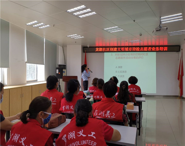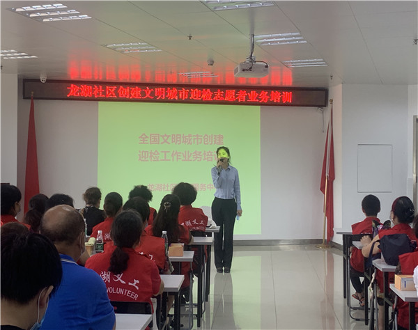 2020年8月5日下午,龙湖社区党群活动室里一个个身穿红马甲的男女老少正聚精会神聆听着一场精彩的培训,据悉,这是深圳市社联社工服务中心驻罗湖区龙湖社区党群服务中心在龙湖社区党委的领导下开展全国第六届创建文明城市迎检志愿者业务培训,共有50名志愿者报名参加。