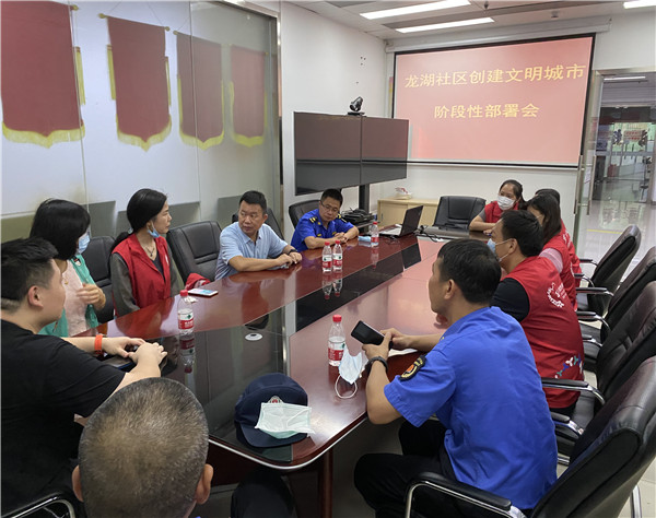 8月13日,清水河街道办事处副主任、城区治理办主任、龙湖社区第一书记刘思源到辖区召开创建文明城市阶段性部署会。社区党委书记、党委班子成员、城区治理办工作人员参加会议。