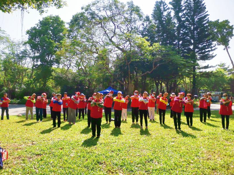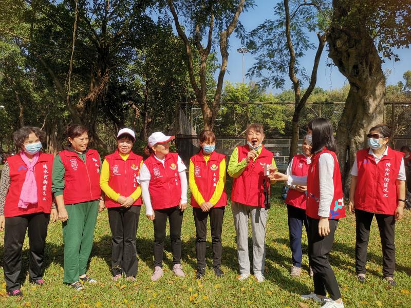 最后,全体义工们以舞蹈《一起走》完美结束上午的团队拓展环节,一抹抹鲜艳的红马甲、快乐有趣的游戏、“游戏惩罚”中嘹亮的歌声、排列有序的舞蹈吸引了沿途不少游客的驻足附和与掌声。