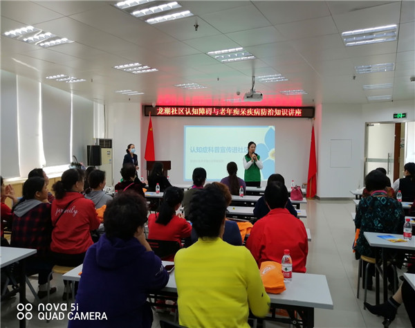 为预防和减缓老年痴呆的发生,降低家庭与社会负担,提高家庭幸福感,龙湖社区党委针对中老年的健康养生需求,于12月2日下午在龙湖社区党群服务中心举行了“认知障碍与老年痴呆疾病防治讲座”,40余名居民参加了活动。