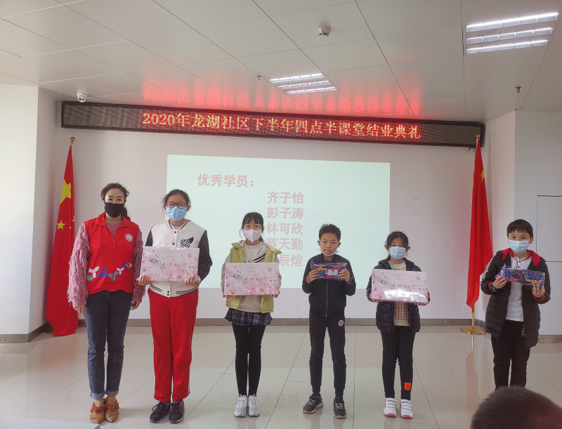 1月18日下午,龙湖社区党群服务中心开展了2020年下半年四点半课堂结业典礼。本次结业典礼主要对本学期四点半课堂学生的学习情况进行总结,并对表现优秀的学生进行表彰。