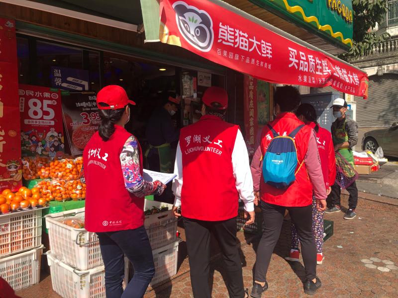 同日上午,龙湖社区党委组织的每日的常态化志愿防疫巡查队伍也参与到本次服务中来,劝导辖区内不戴口罩人员少出门、劝导聚集人员少扎堆、督促商铺等防疫工作。