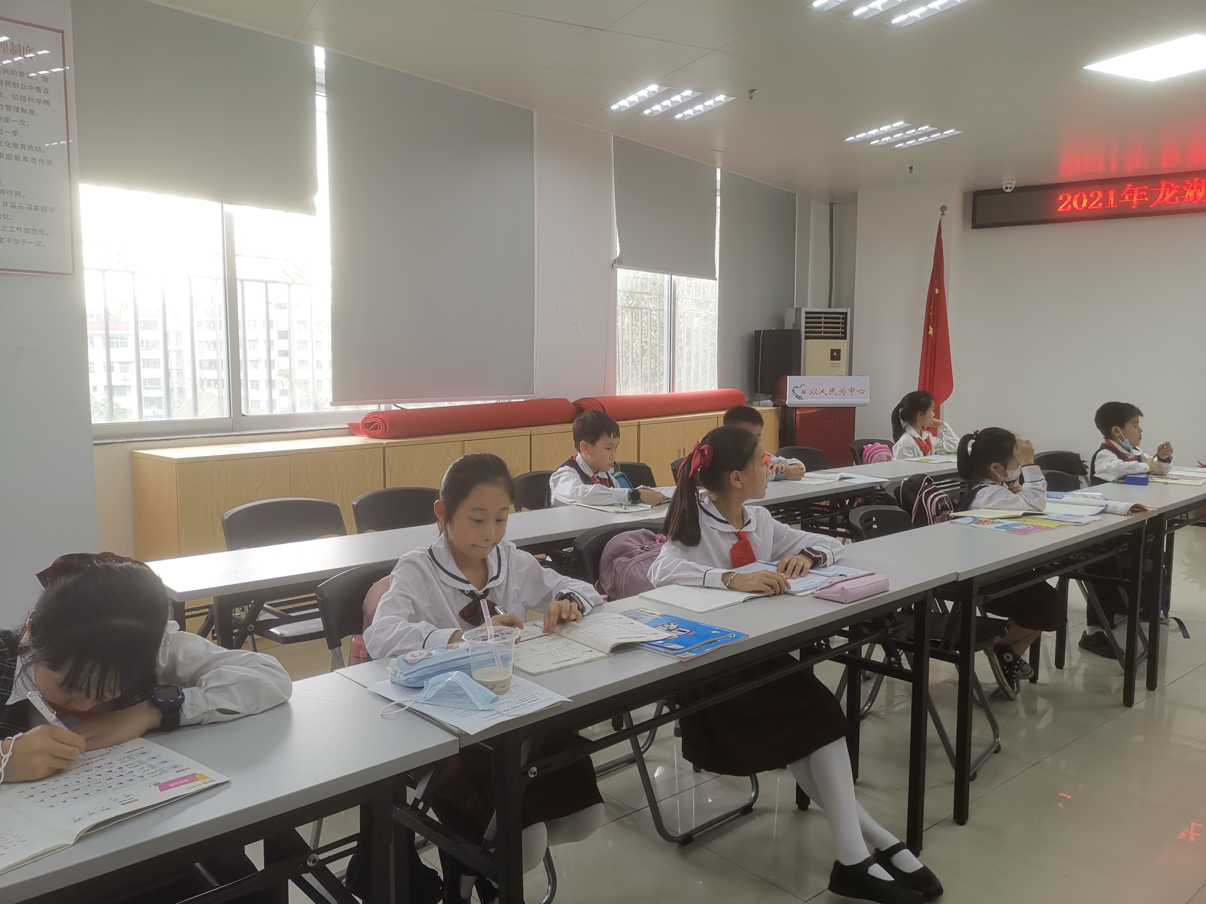 龙湖社区四点半课堂主要为辖区的居民家庭解决孩子放学后无人看管问题。课程由原来单一的作业辅导,延伸为不定期的亲子活动、安全教育、文明礼仪、法律知识、消防知识、爱国主义教育等。