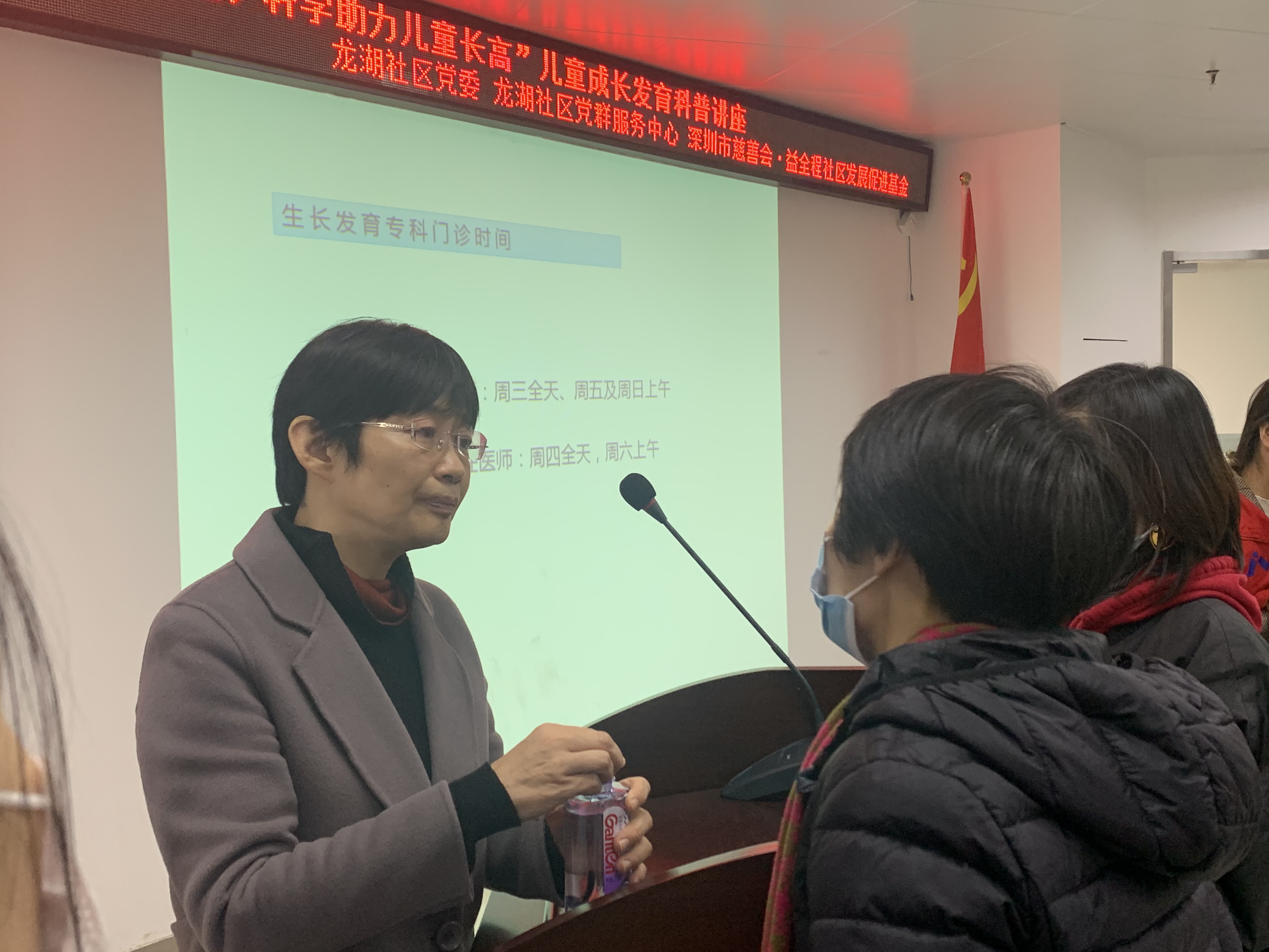 身高增长是衡量儿童健康的重要指标之一,改善儿童身高,不仅是家庭的需要,也是一项重要的国家健康战略,为向居民普及孩子身高的科学知识,近日,龙湖社区党群服务中心联合深圳市慈善会·益全程社区发展促进基金,特别邀请了深圳市罗湖区中医院儿童主任医师吴涛开展了有关儿童生长发育的科普讲座。
