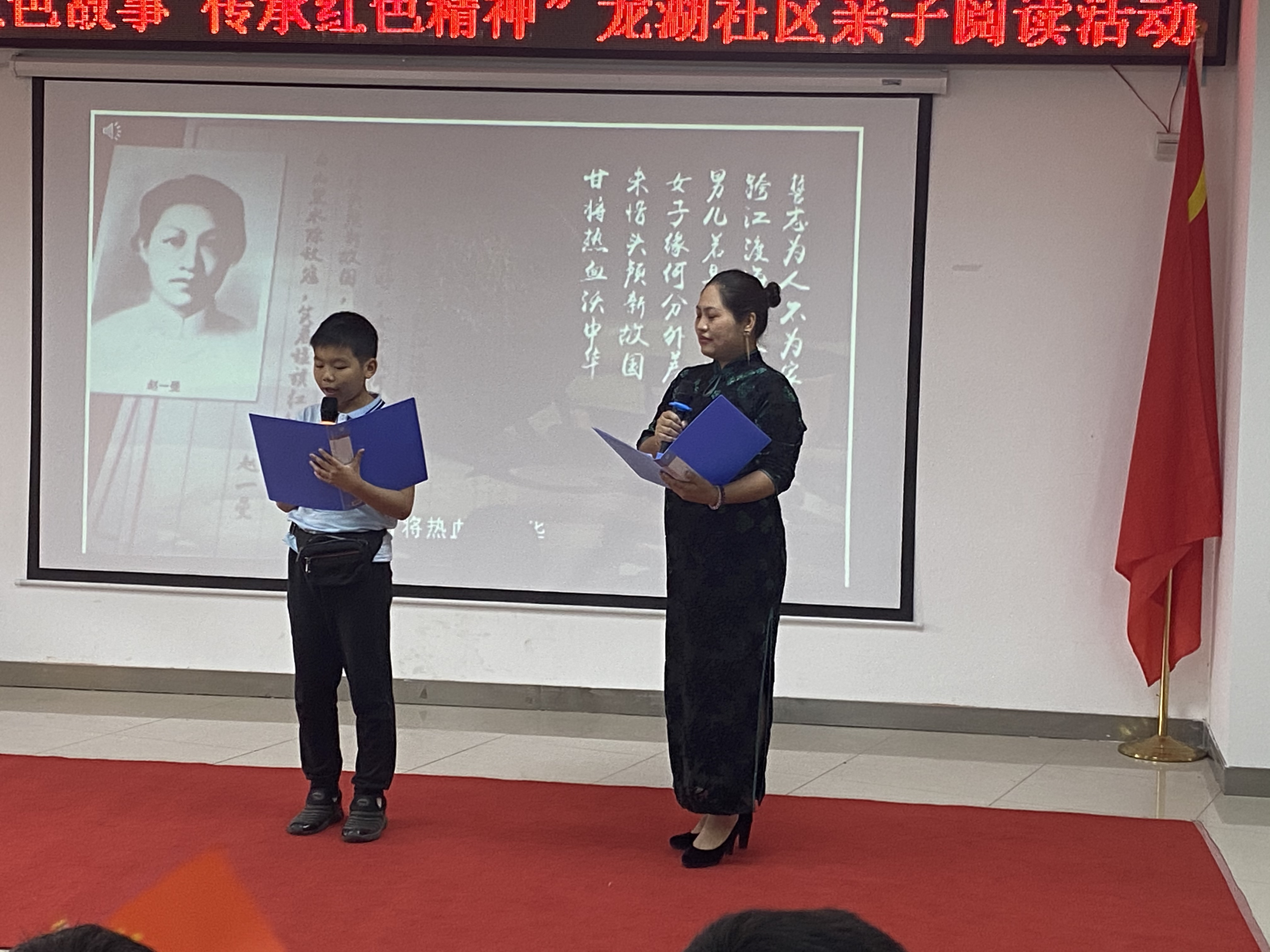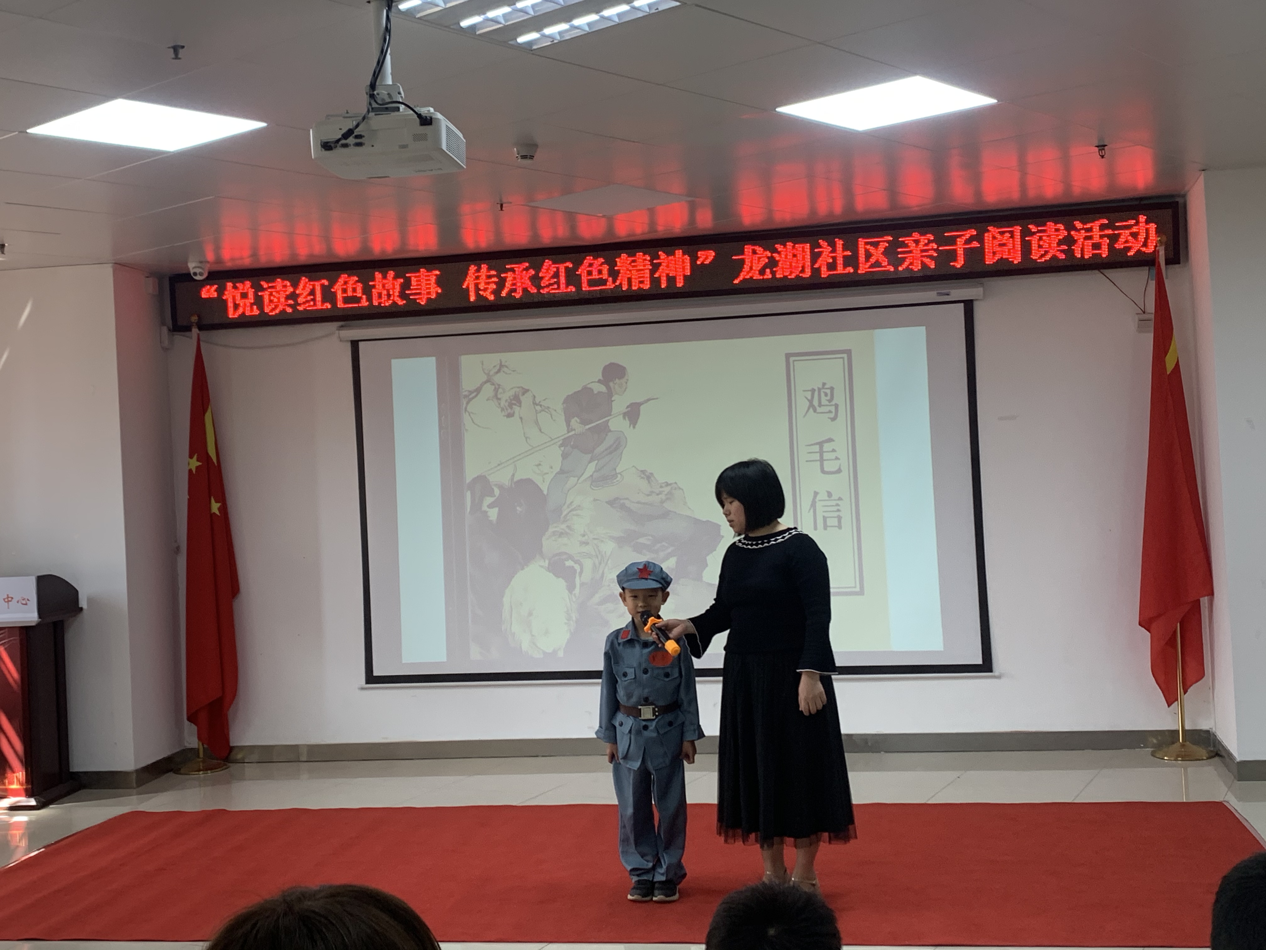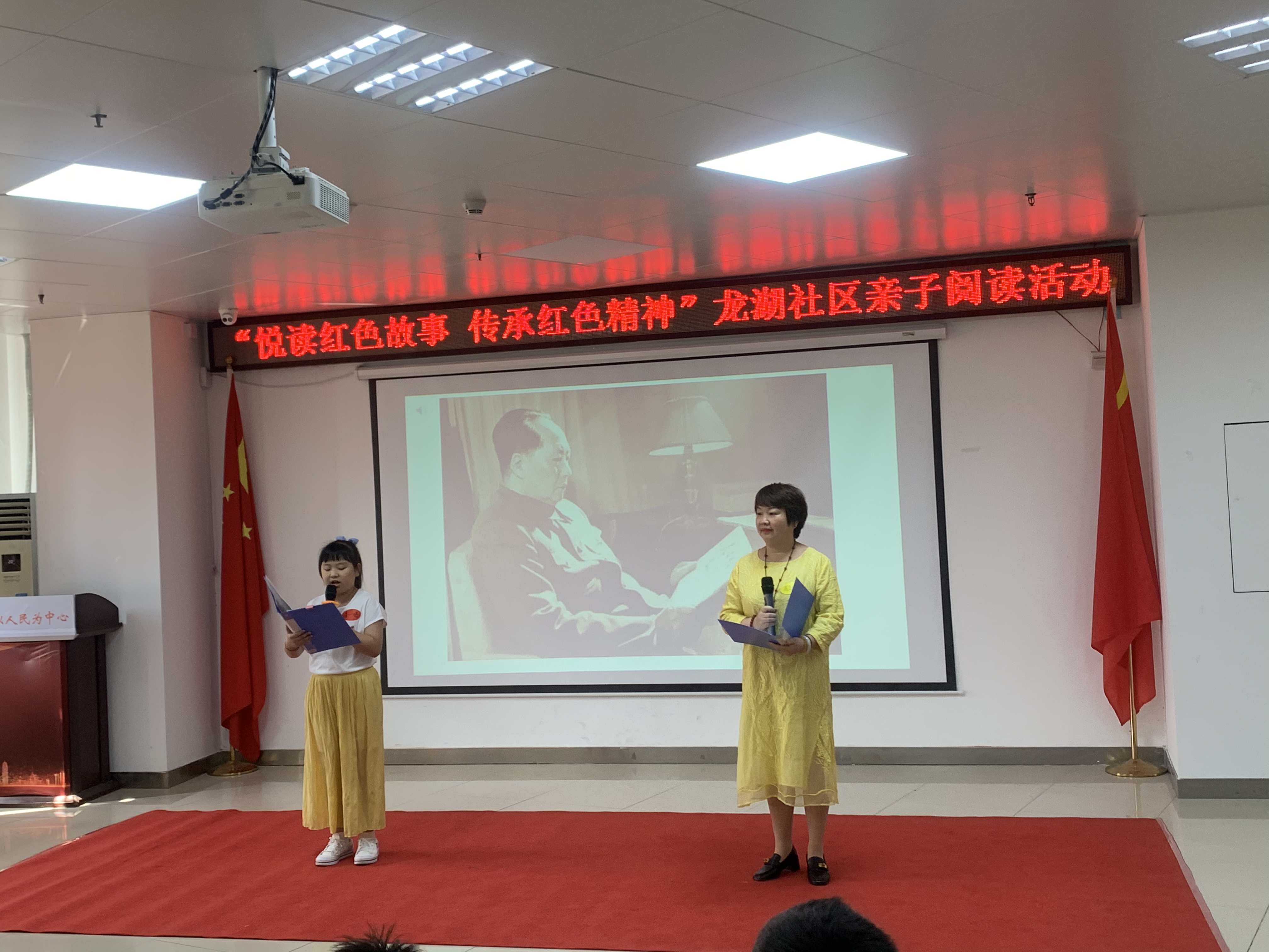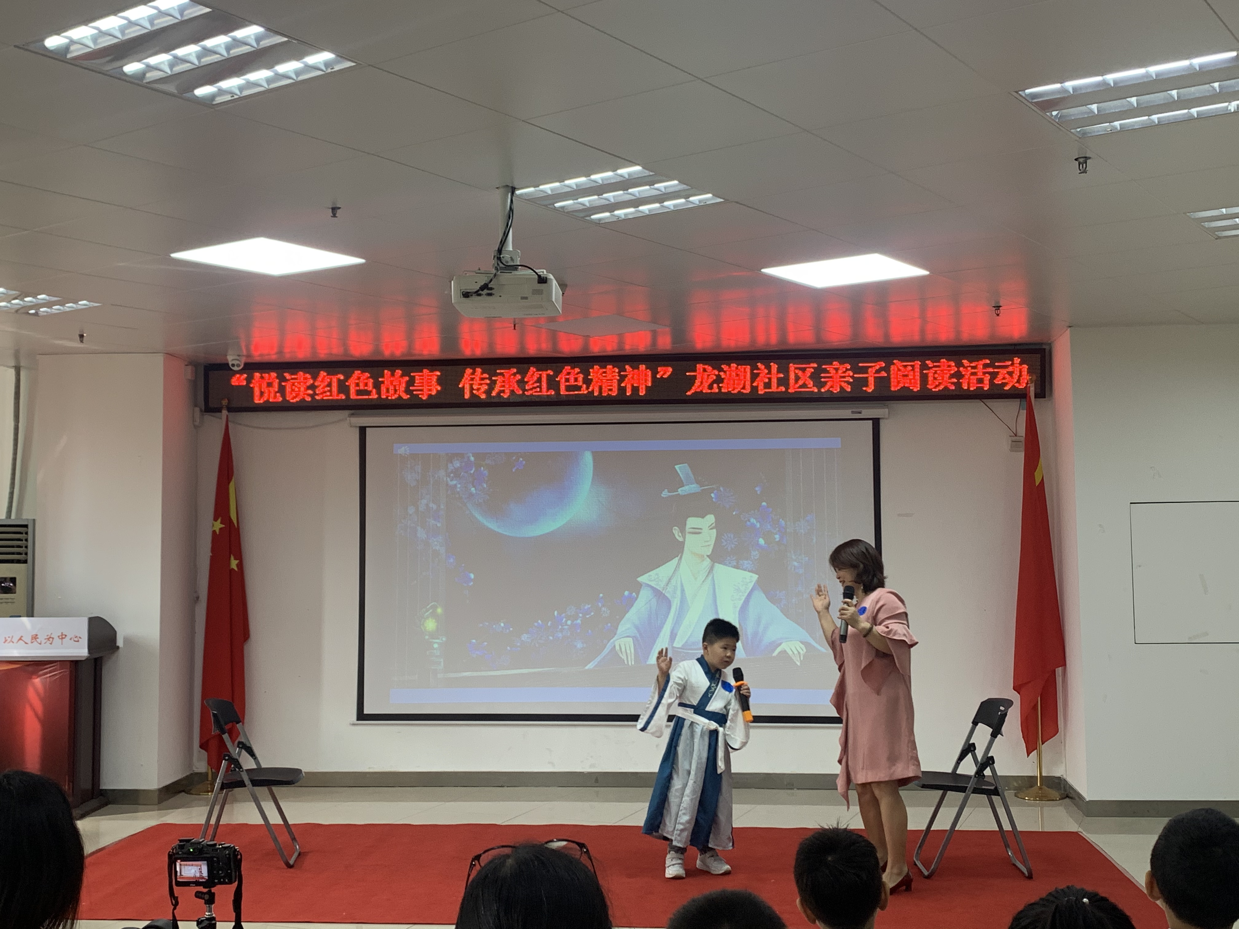 当红色经典遇上亲子共读,这是一场爱的传承。2021年4月11日上午,在龙湖社区党委的支持下,龙湖社区党群服务中心联合社区妈妈读书会在社区综合活动室开展了一场“悦读红色故事,传承红色精神”亲子读书活动,18对亲子朗读者分别登台表演,用诵读的形式抒发他们爱党、爱国、爱家的家国情怀。