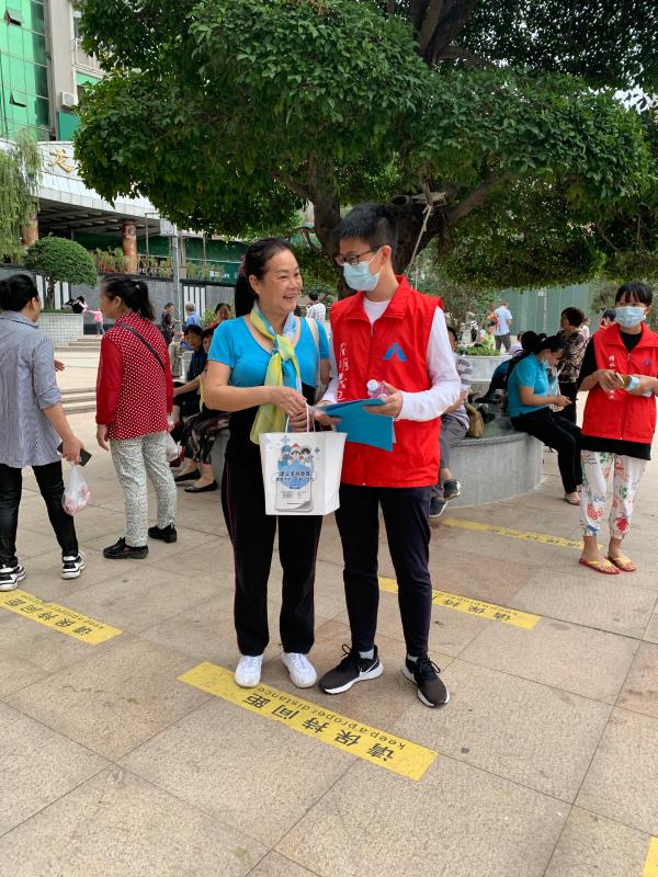 图片三:青少年进行外展志愿服务宣传与居民近距离交流,体验情绪