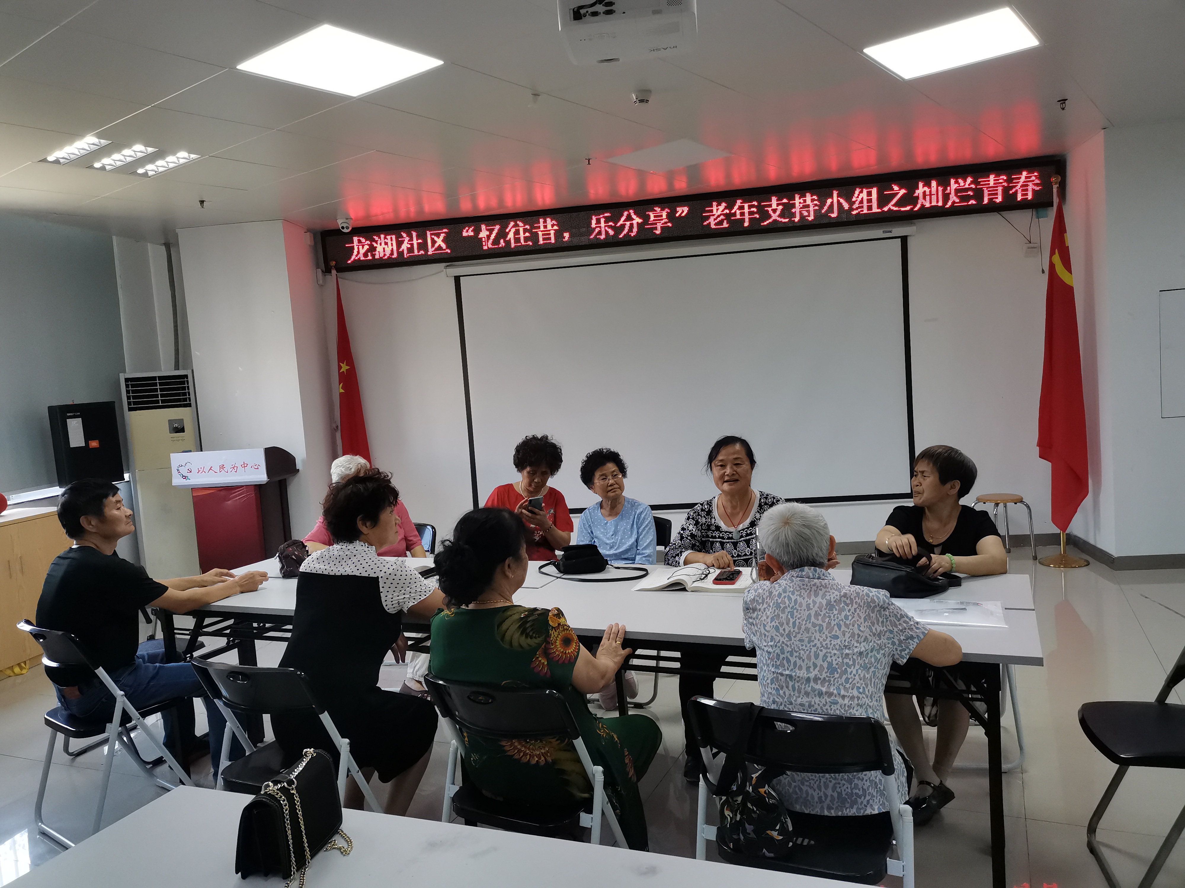 为了缓解辖区老年人因社会角色转变而带来的“孤独感”、“无助感”,重拾生活的自信,扩大他们的社交领域,使他们的晚年生活更加丰富多彩,2021年5月8日下午2:30-3:30,在社区党委的支持下,龙湖社区党群服务中心开展了“忆往昔,乐分享”老年支持小组第四节,本次是通过游戏猜歌名一起回顾中学时期最流行的红歌,重温青春时光。活动中12名社区长者们回顾分享自己中学时期最成功、快乐的事情,在互动中展现自我,认识他人,重建自信,唱响当下生活。