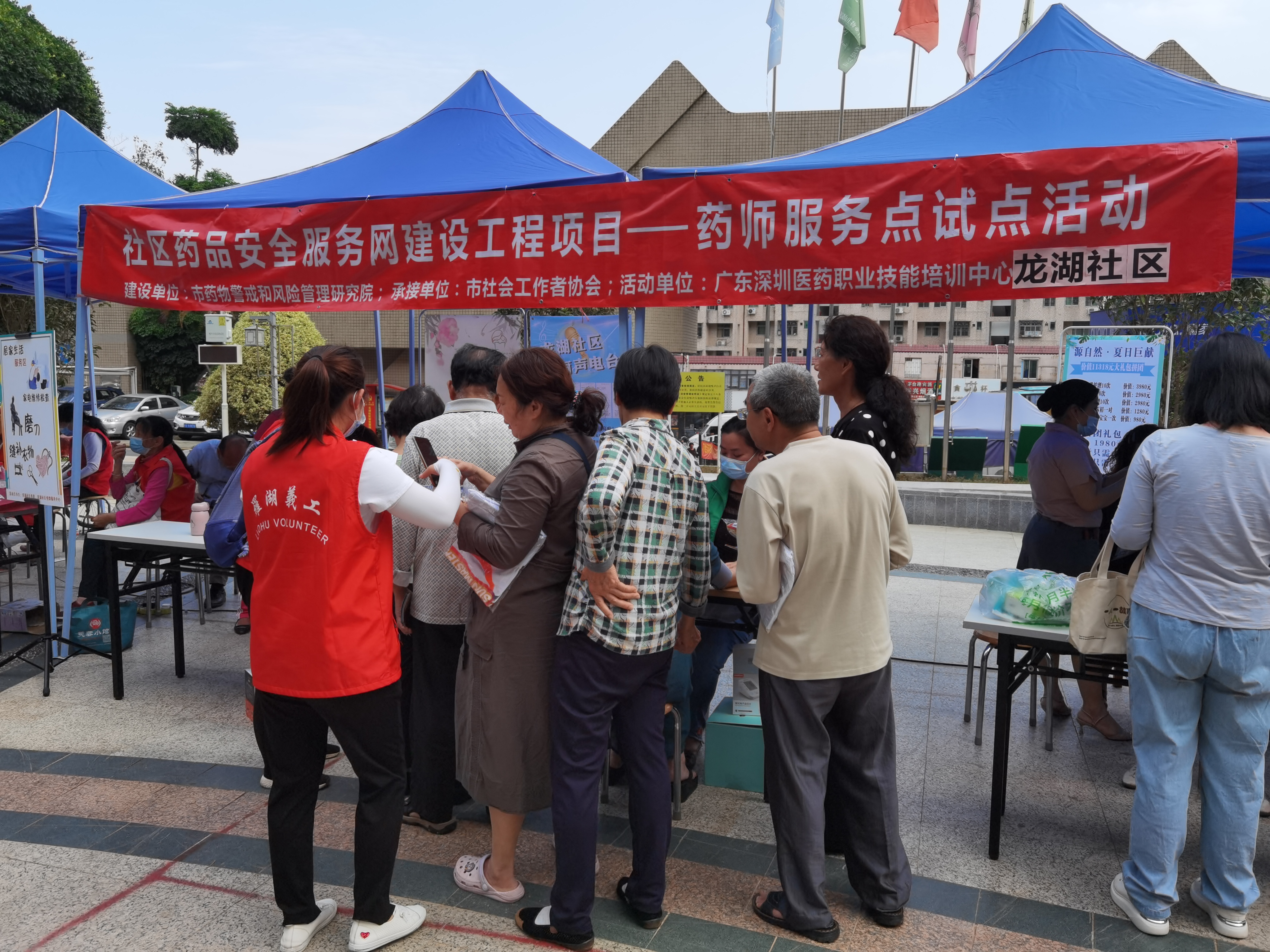 2021年5月14日下午,龙湖社区党委、龙湖社区党群服务中心联合深圳市药师协会、深圳市博爱医院以及龙湖社康服务中心开展“我为居民办实事”疫苗宣传、药品安全宣传活动。