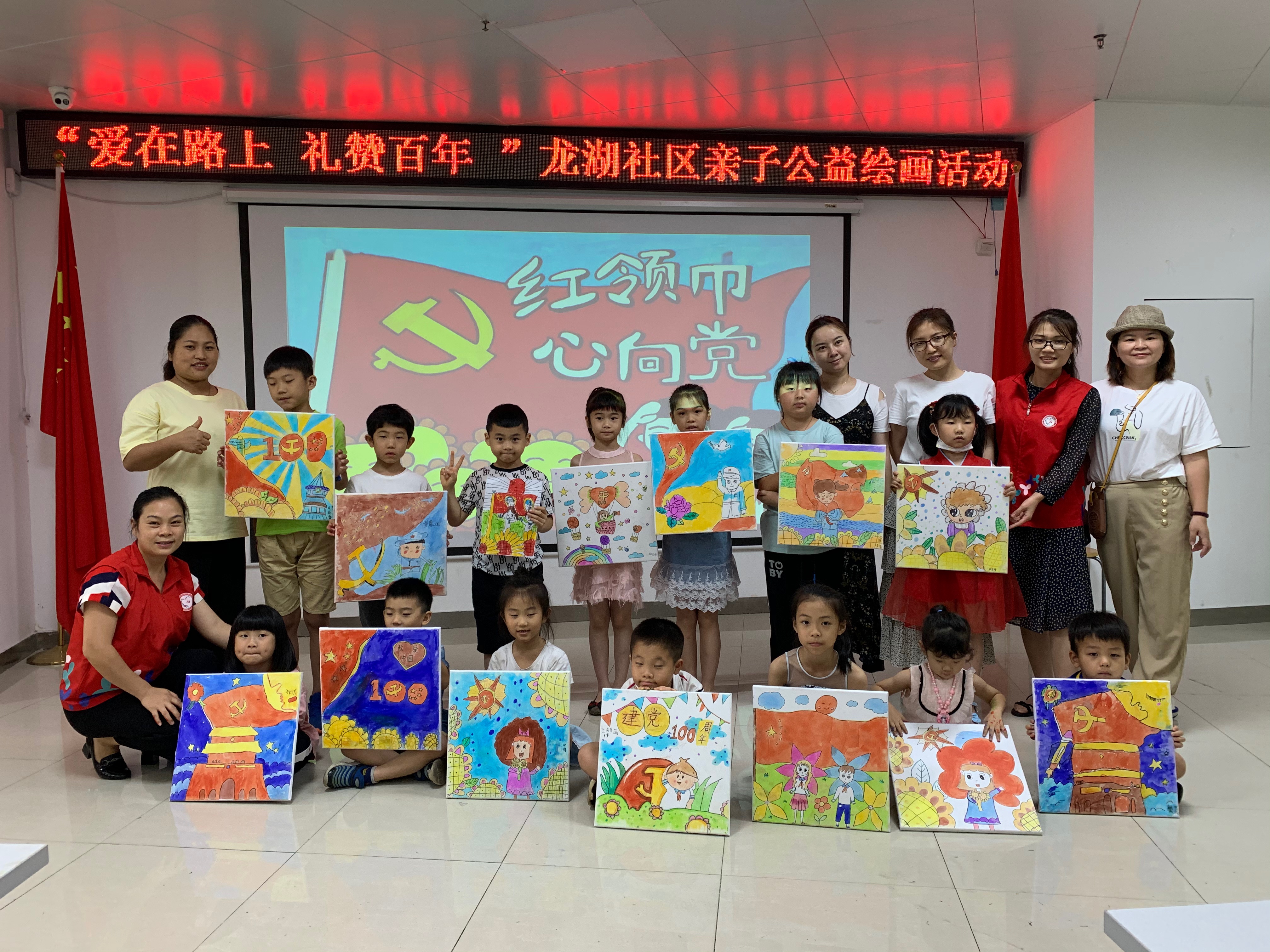 为了把红色文化融入家风教育,形成与时俱进、具有强大生命力的家风.近日,龙湖社区开展了“爱在路上 礼赞百年 ”龙湖社区亲子公益绘画活动,共吸引了14对亲子参与活动。