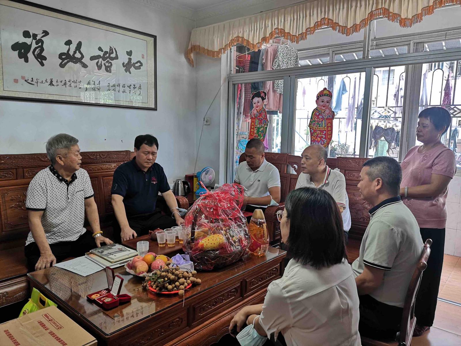 为弘扬烈士精神、关爱烈士家属, 在“八一”建军节来临之际,7月27日上午,市退役军人管理局副局长王文全、处长谭洪伟、罗湖区退役军人管理局副局长曾剑锋一行,在清水河街道街四级调研员黄大满、龙湖社区书记谭颖葵陪同下来到烈士家属林惠廷家里,为他们送去慰问金和慰问品,把党和政府的温暖送到他们心坎上。