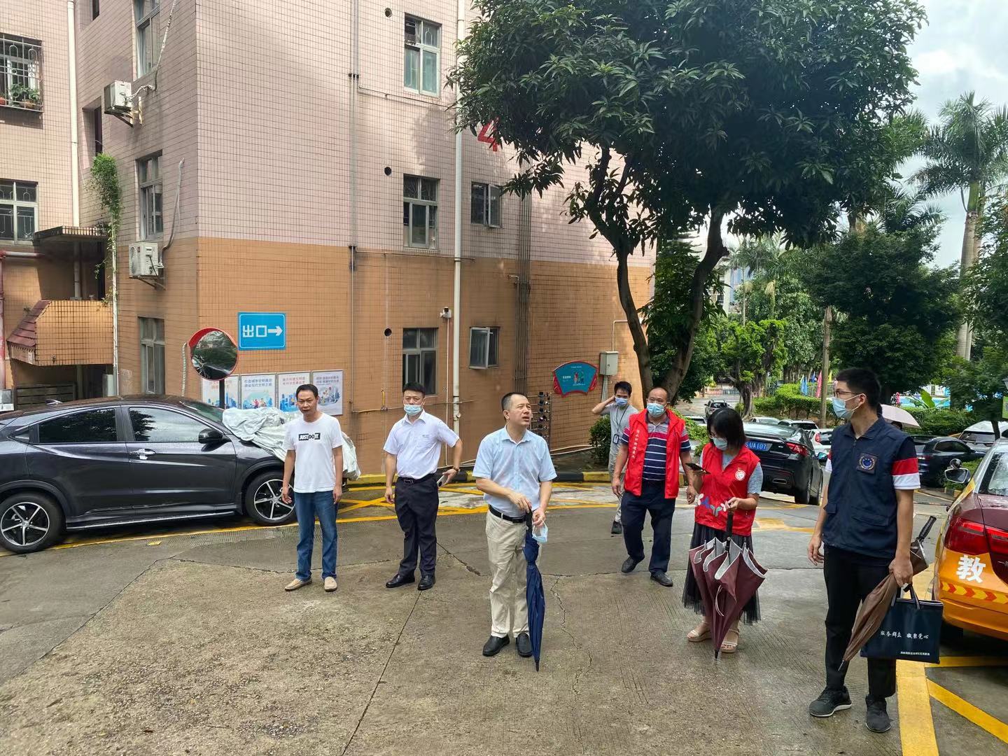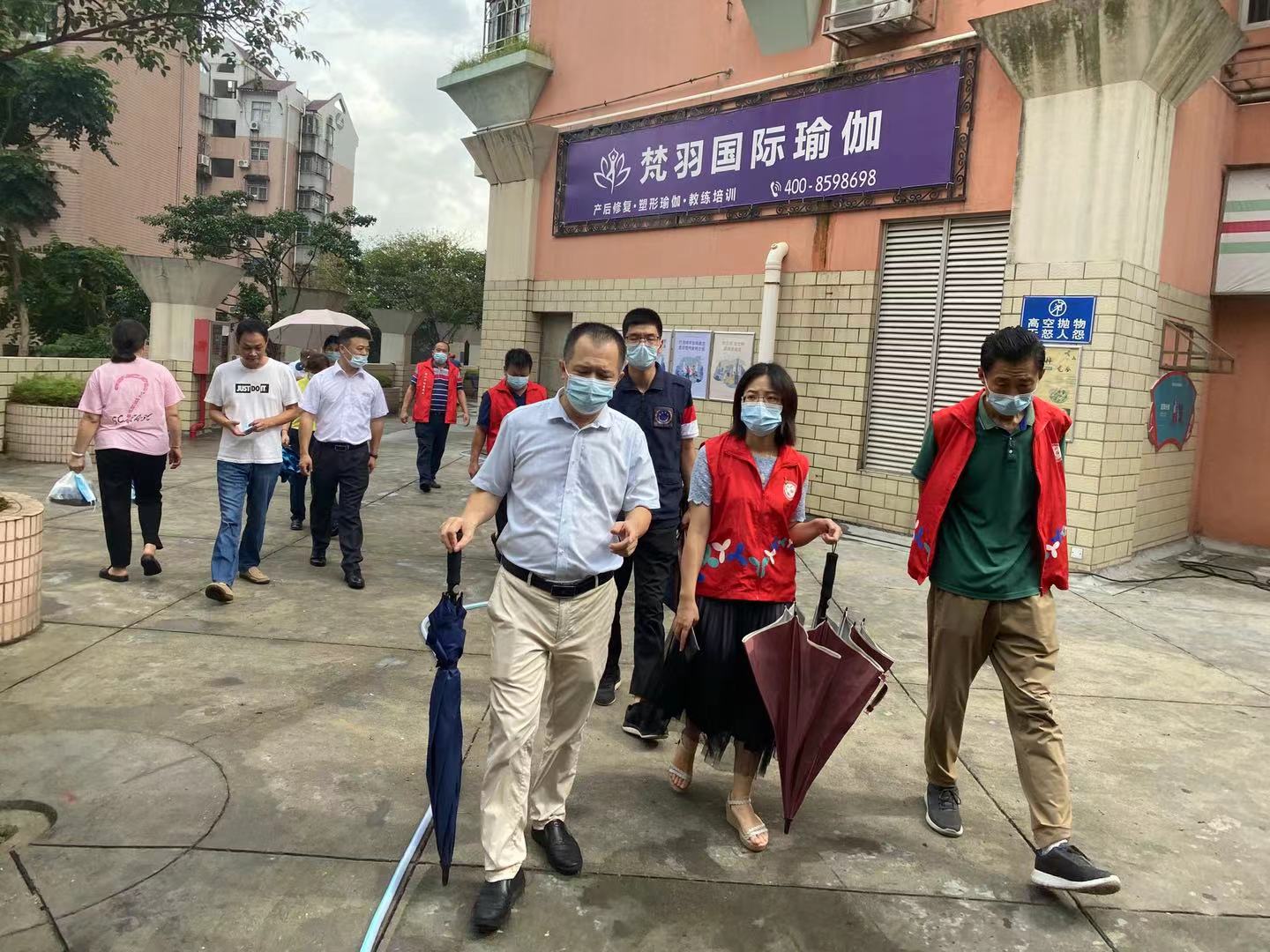 8月13日下午,龙湖社区第一书记陈晓冬,在社区党委书记谭颖葵、副站长黄海良、安全专干文启龙以及社区全体网格员的陪同下,对龙湖社区的疫情防控工作进行巡查。