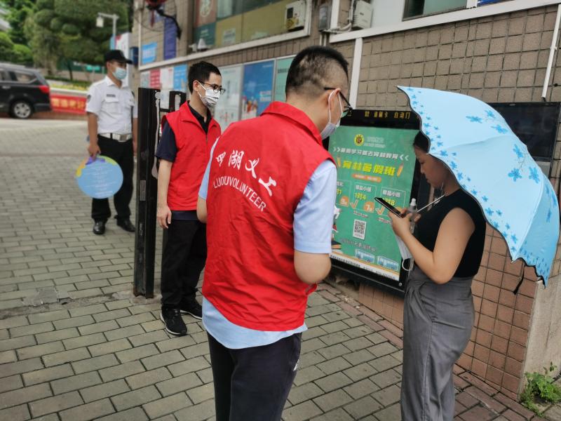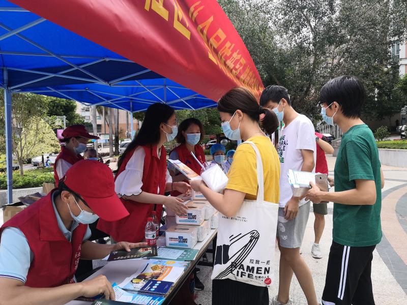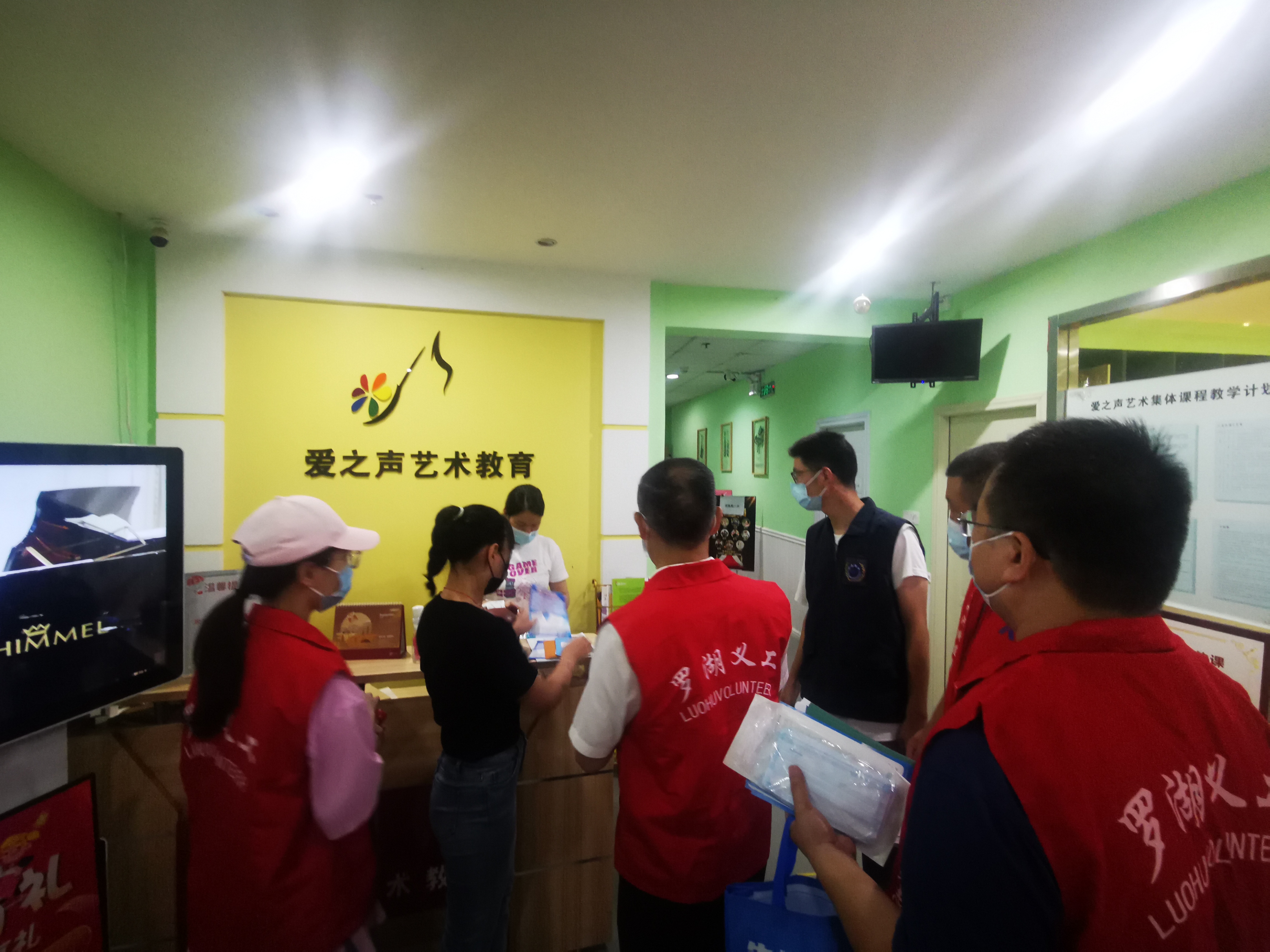 本次活动共分三个行动小组,一是现场宣传组,通过横幅、海报、派发宣传资料、义诊等方式,多途径宣传防疫知识,倡导社区居民戴口罩、勤洗手、多通风、少聚餐、1米线、接种疫苗,健康生活从防疫开始。二是流动宣传组,志愿者分片包干、走街串巷、逐门逐店提醒群众科学佩戴口罩、免费派发口罩。检查非生活必要密闭场所的停业情况,和商超、餐饮店等人员密集场所查码、查轨、测温及疫苗接种等防疫工作落实情况,进一步筑牢疫情防控安全网。三是小区卡口值守组,“各位居民朋友,请自觉出示健康码和行程码,配合测温,凡从中高风险地区返深人员,请自觉报备。”志愿者与小区物业保安一起,严格落实小区卡口“一问二测三查四处置”四步法,筑牢社区防疫墙。