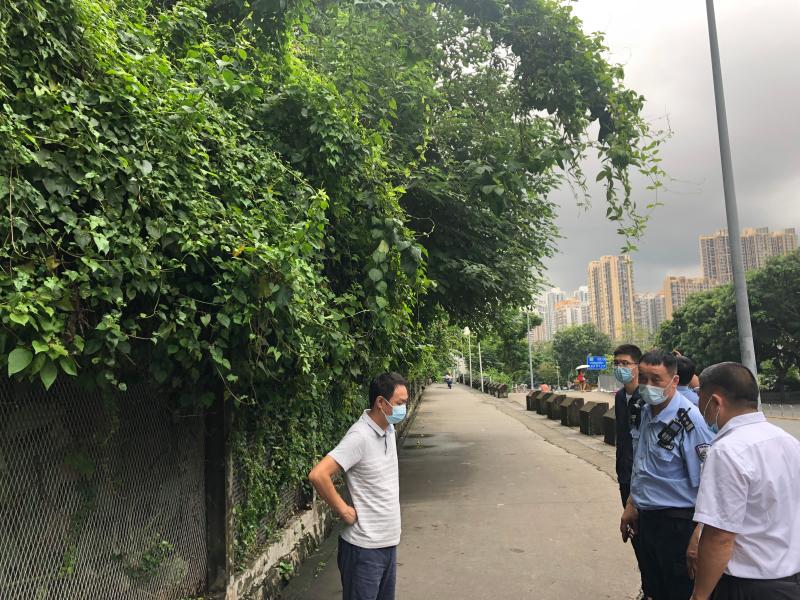 龙湖社区联合交警、小区物业实地考察需要修剪树枝