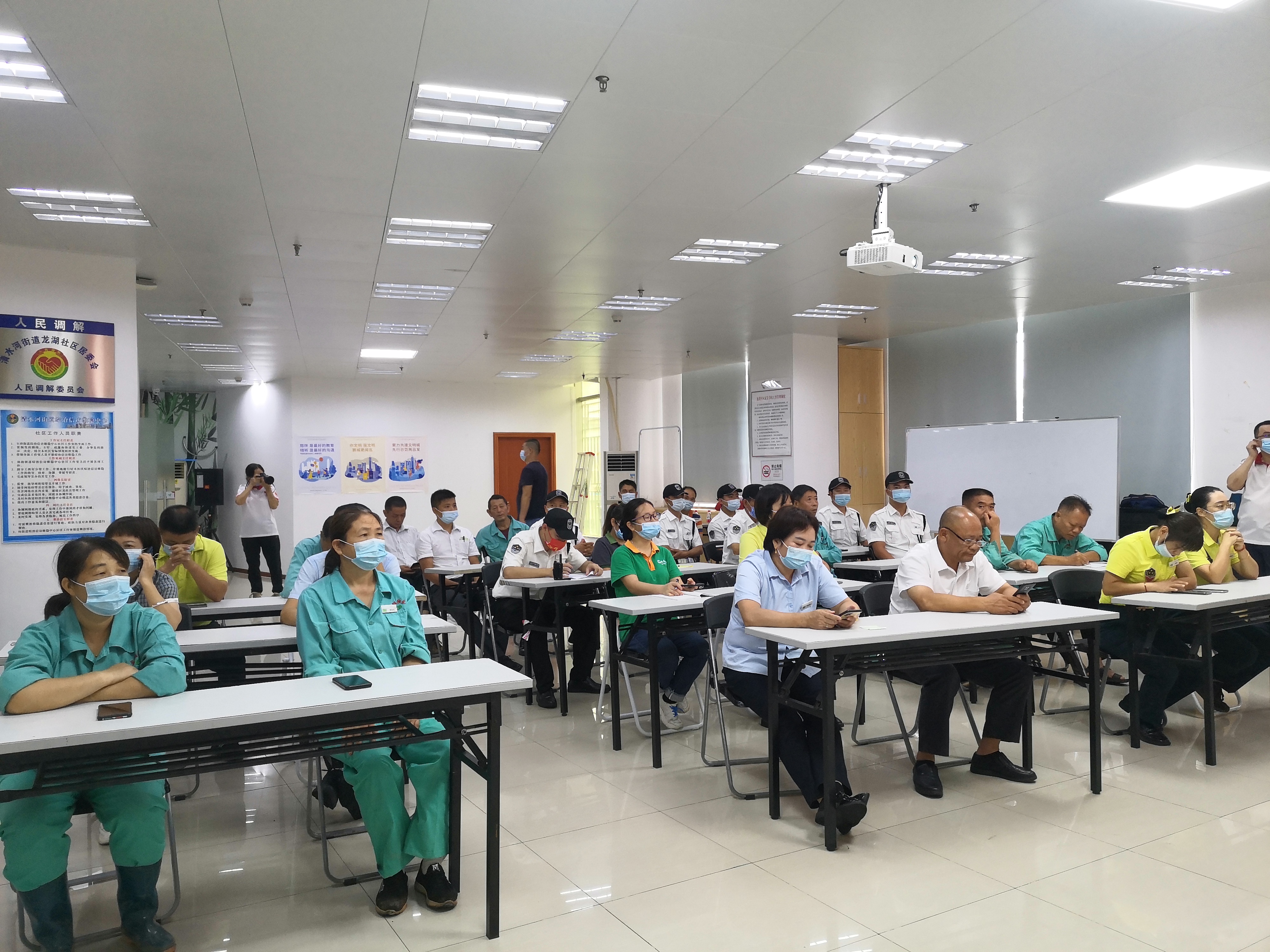 为进一步加强龙湖社区全体工作人员的安全意识,构筑牢固安全思想教育体系,提高工作人员面对突发事件的应变能力和自防自救能力,10月14日上午,龙湖社区举办防灾减灾安全教育培训讲座。邀请了防灾减灾公益宣传服务中心讲师为我社区进行了一场生动、有意义的安全知识授课。社区全体干部职工、学校职工、环保员等共计50余人参加讲座。