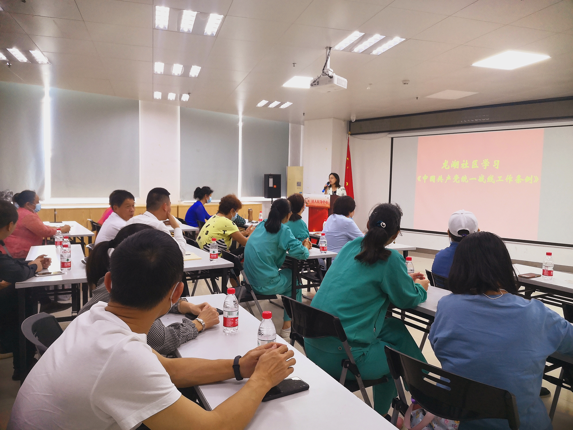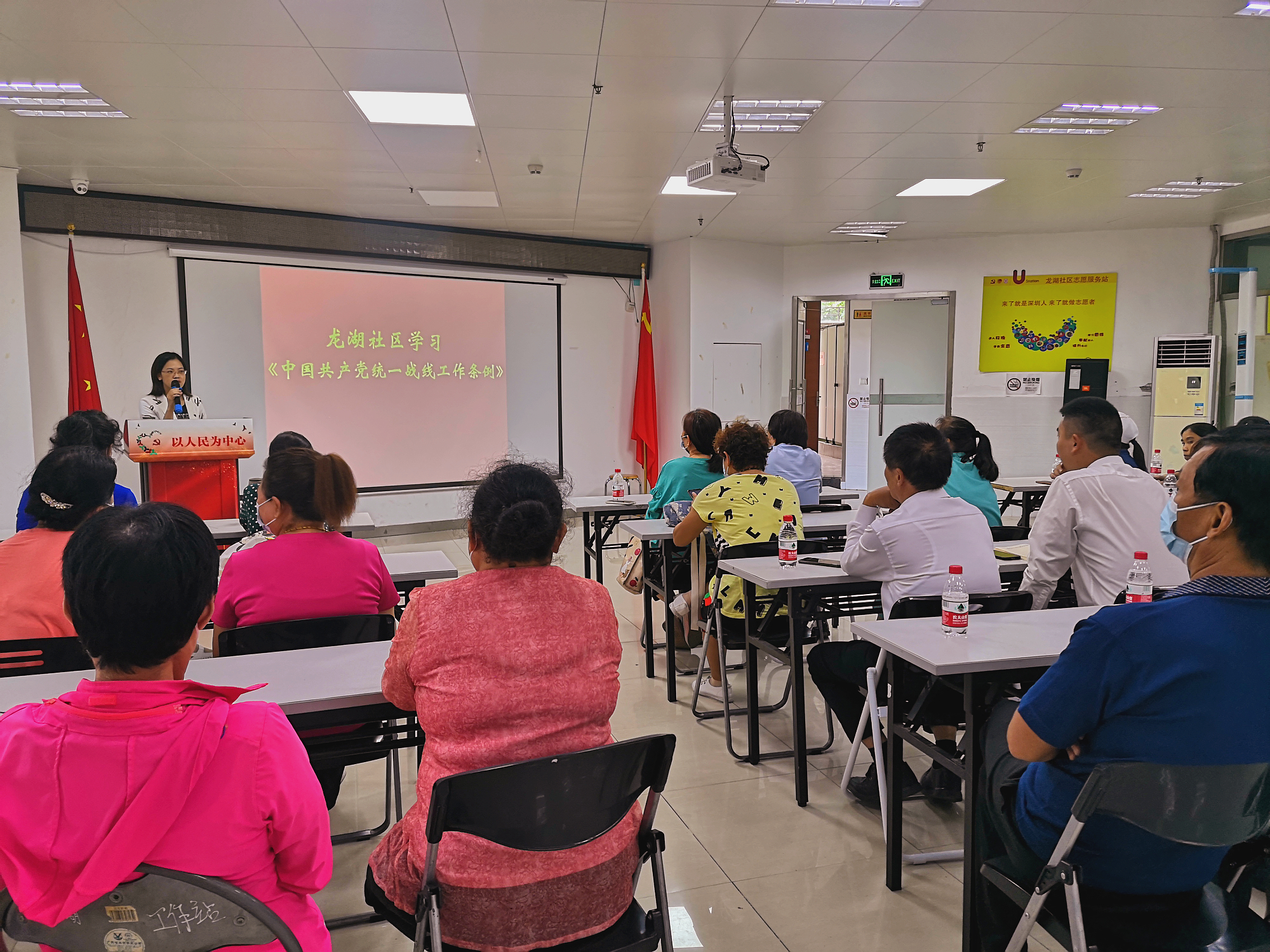 10月27日,龙湖社区召开学习《中国共产党统一战线工作条例》会议,由社区党委书记谭颖葵主持,全体工作人员以及辖区居民、物业管理人员参加。
