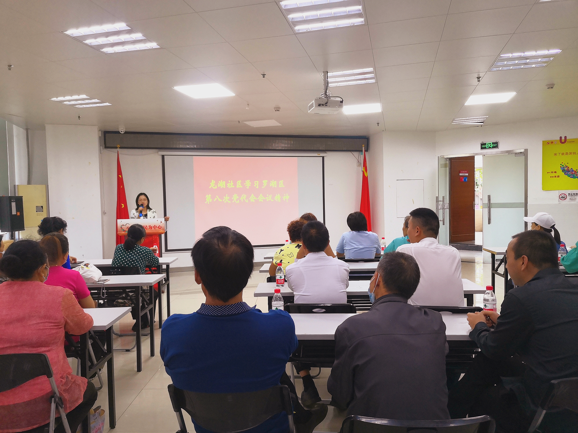 10月27日,龙湖社区召开学习罗湖区第八次党代会会议精神,由社区党委书记谭颖葵主持,全体工作人员以及辖区居民、物业管理人员参加。