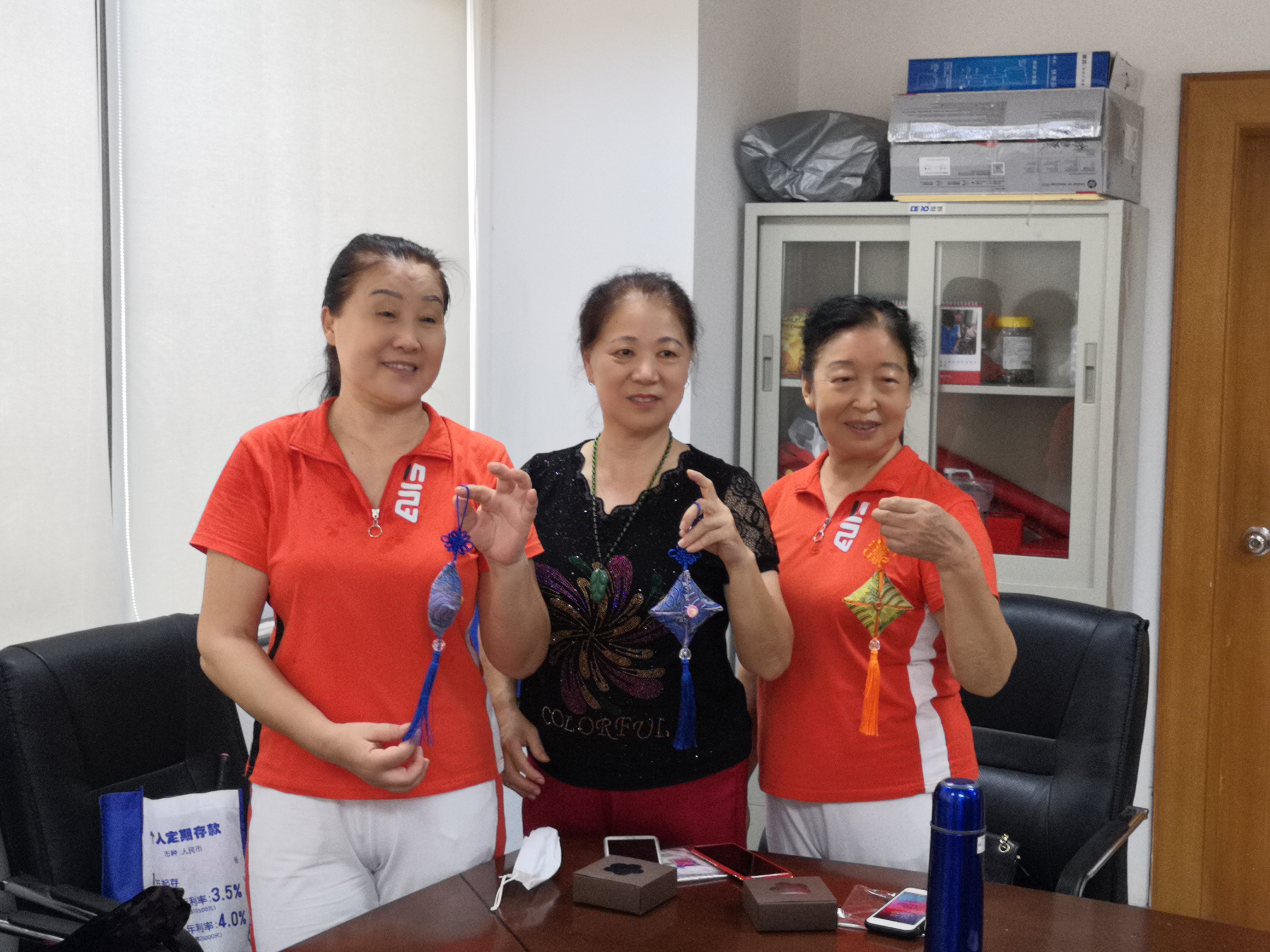 活动以线上结合线下的形式开展.社工在微信群里带领大家一起进行“端午节手势舞”热身,并畅谈端午节的由来和习俗。吃粽子、做香囊、划龙舟、带五彩线......,不同地方不同的风俗,大家对端午节的习俗知道的还真不少,但大多数人亲手制作香囊还是第一次。通过香囊制作视频教学,心灵手巧的居民们小心地将中草药打成的粉放入香囊中,通过针缝收口并装饰缝制,完成了香囊的制作。当一个个五颜六色的香囊作品、抖音视频分享到群里时,看着大家照片上满意的笑容,隔着屏幕都能闻到中草药的香味。据说,香囊能驱蚊,而挂在孩子身上则寄托着希望孩子平安的愿望。