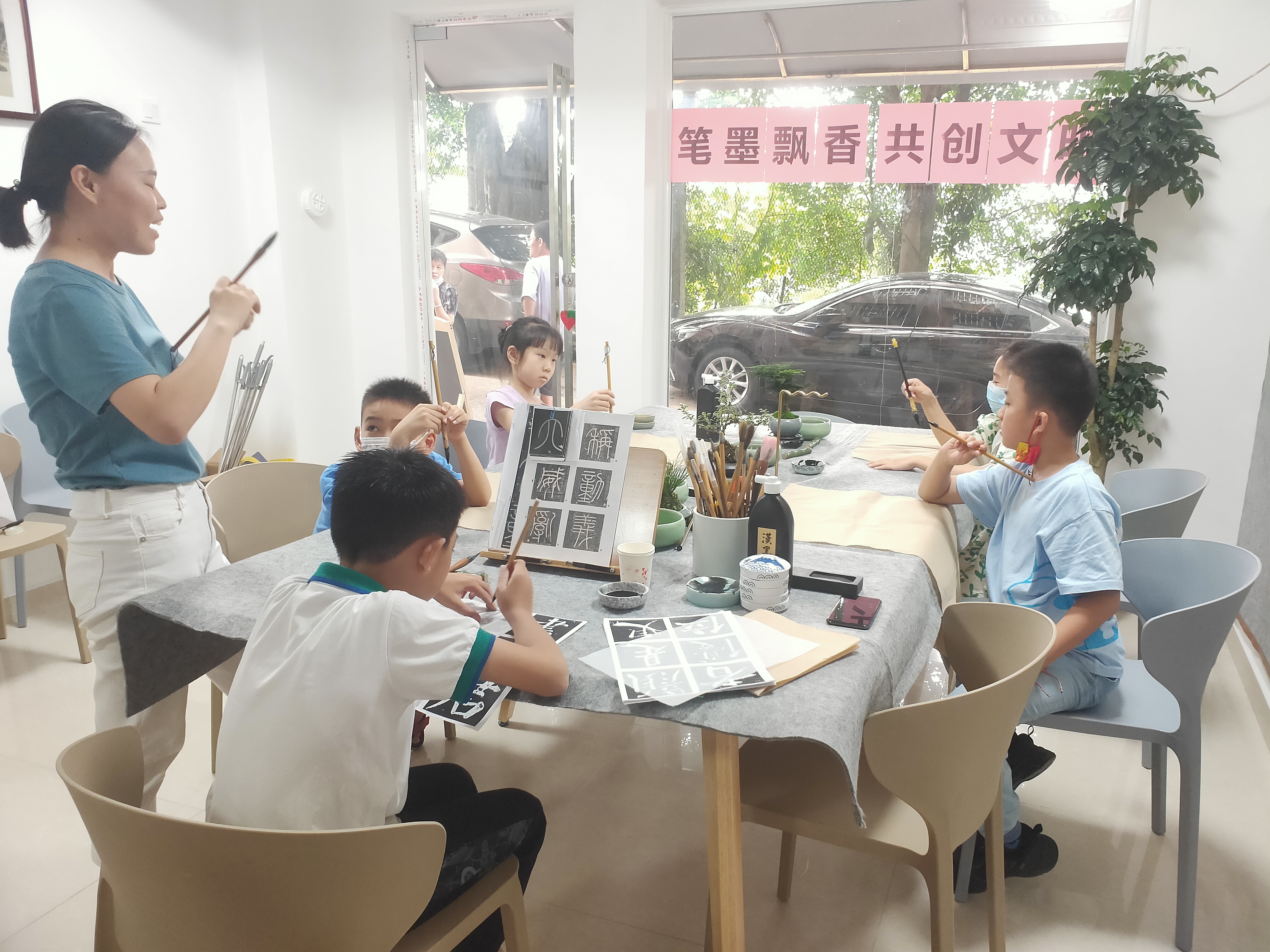 [新时代文明实践站]“笔墨飘香 共创文明”龙湖社区开展未成年人书法活动