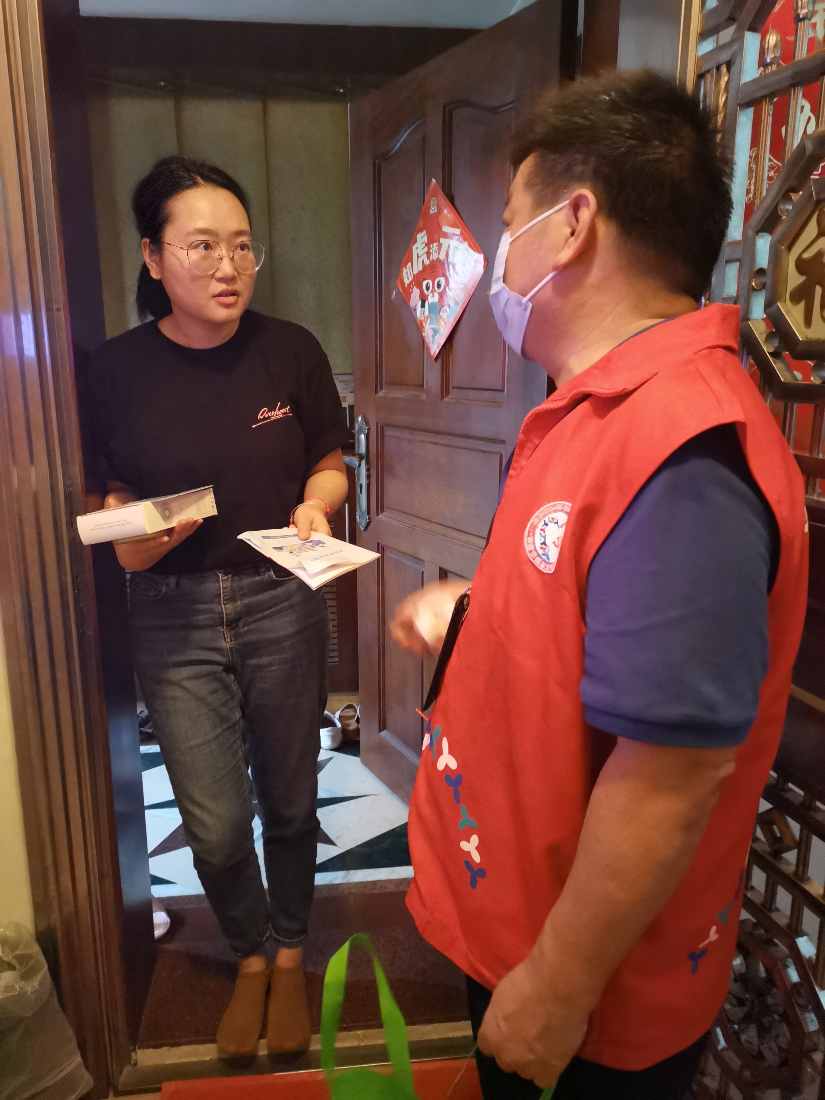 龙湖社区网格员上门宣传创文工作