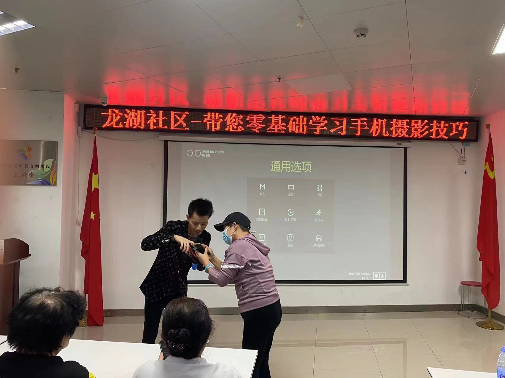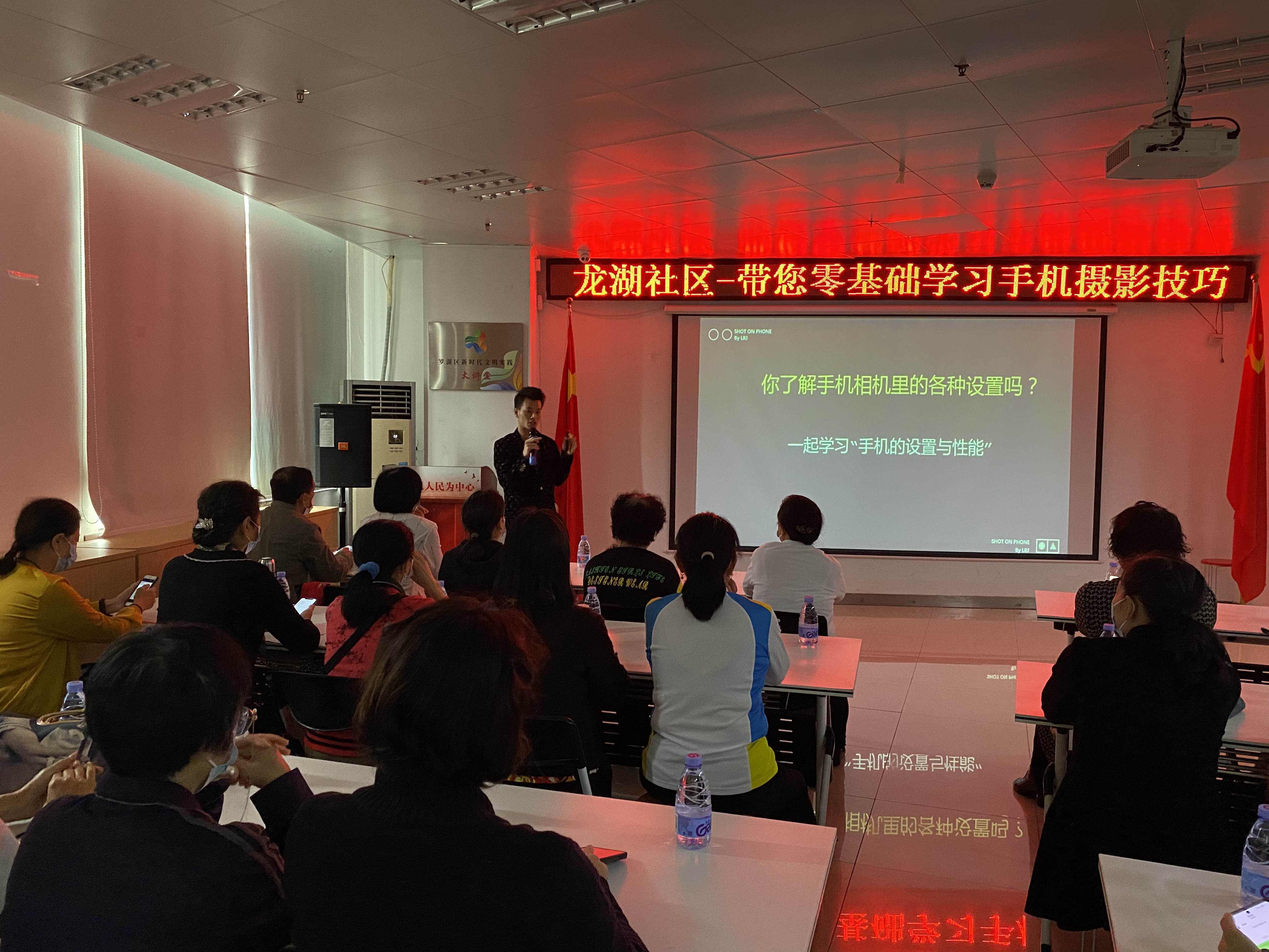 罗湖家园网讯:在这个手机不离手的智能时代,随手拍照记录美好生活的瞬间成了习惯。如何使用手机拍出更好的照片,这是一门有技巧可寻的技术。2022年11月8日下午,在龙湖社区党委的领导下,龙湖社区党群服务中心社工链接社区资源——龙湖社区核酸采样点点长、有专业摄影经历的黄幸明先生,在龙湖社区新时代文明大讲堂,为社区志愿者开展了一场别开生面的手机摄影培训课程。本次活动共有31名社区志愿者参加。