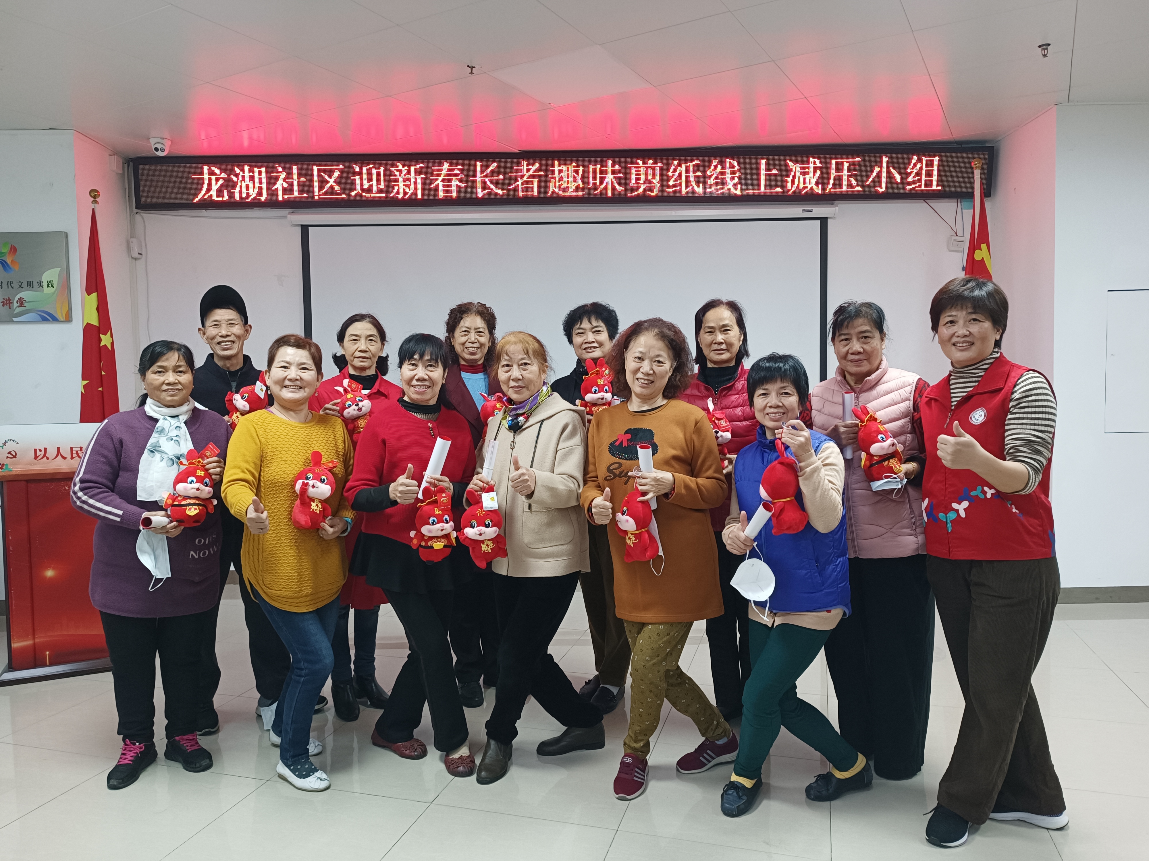 为进一步弘扬中国传统民俗文化,提升辖区老人对传统文化的认识,营造浓厚的节日气氛,提升居民幸福感、归属感,共庆新春佳节,2023年1月12日至17日,在龙湖社区党委的领导下,龙湖社区党群服务中心携手社区新时代文明实践站开展了为期6天的长者迎新春趣味剪纸减压小组线上活动,共有15位社区的老年居民参加了此次小组。