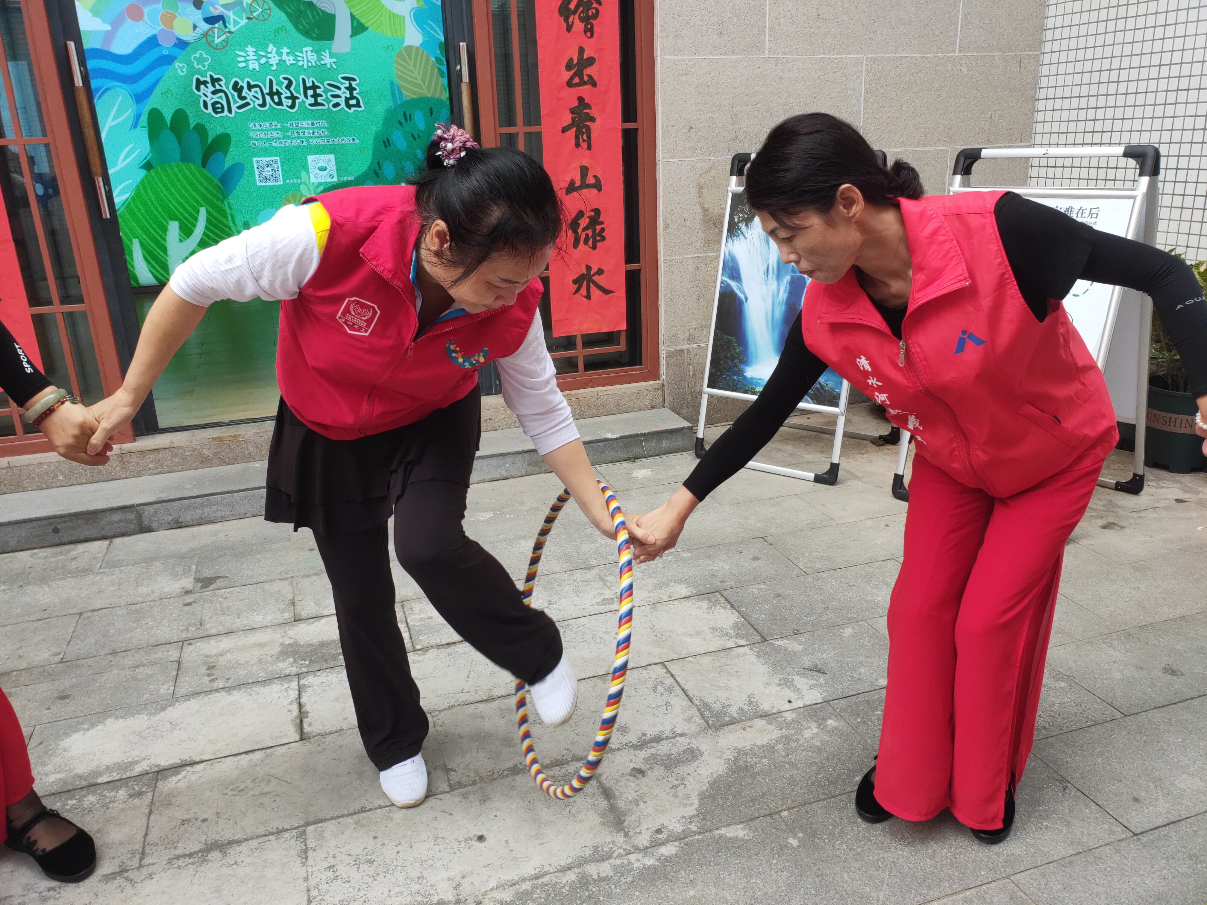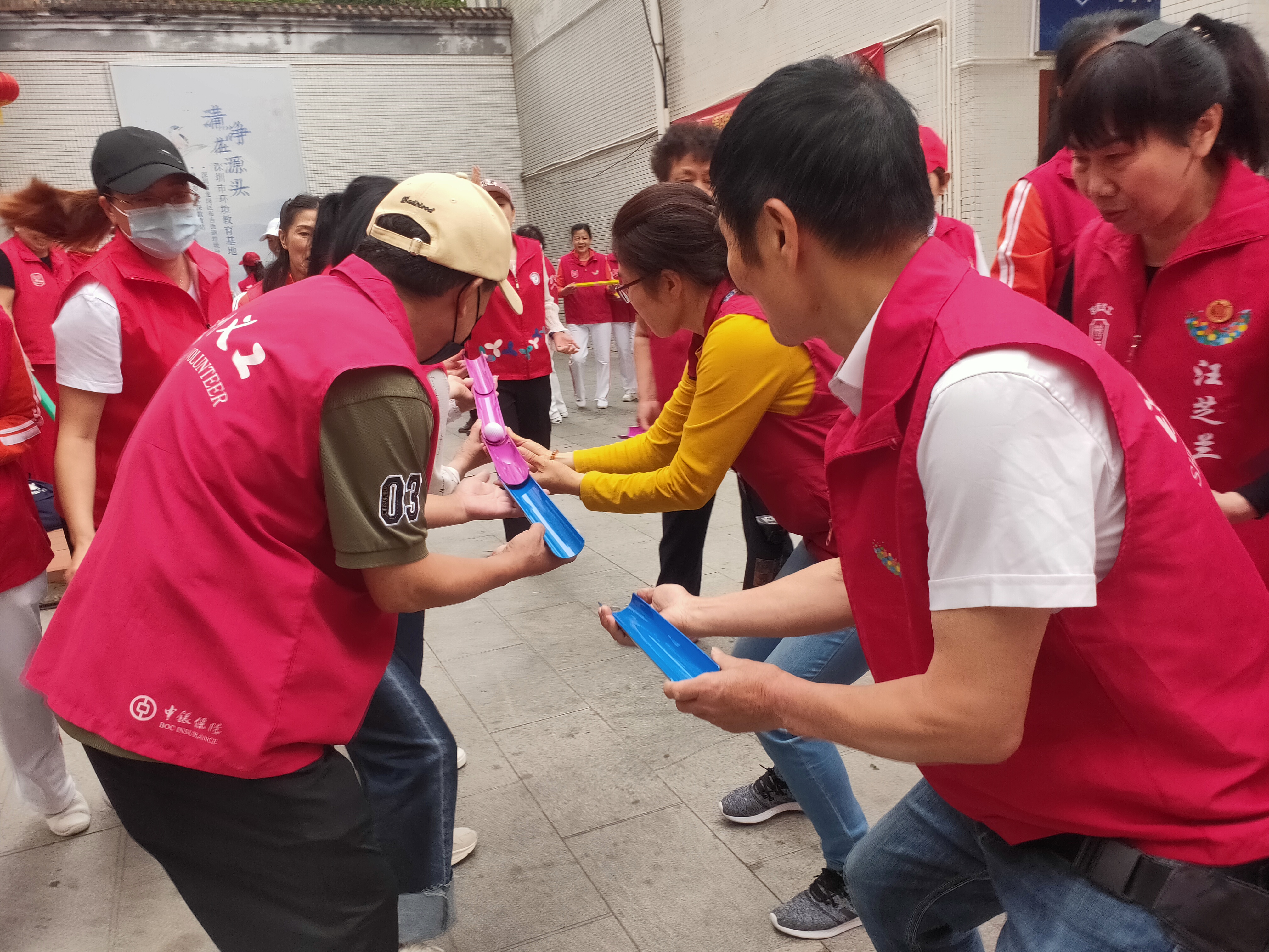 上午九点,志愿者们统一身穿红马甲,准时到达预定集合地点,在社工的带领下拉起横幅、准备活动道具、设置游戏场地,井然有序地完成了活动场地布置。本次团建活动在义工舞蹈队的舞蹈《我和我的祖国》中正式拉开了帷幕,活动内容分为两个环节,首先是志愿者们先以分组比赛的形式参与“珠行千里”、“一圈到底”等团队合作游戏,通过游戏感受团队合作的力量,提高团队默契,传承优良志愿服务精神。现场氛围其乐融融,大家都十分活跃。然后是“四史”知识竞答。活动中,社工提出:“四史是哪四史?”志愿者们异口同声地回答:“新中国史、改革开放史、社会主义发展史”。最后社工对志愿者们一直以来对社区工作的付出和努力表示感谢,并组织大家合影留念。本次活动在志愿者的欢声笑语中接近尾声,大家纷纷表示要认真学习党的二十大精神,弘扬新时代志愿者精神,继续为龙湖社区居民提供志愿服务,为创建文明社区贡献自己的力量。