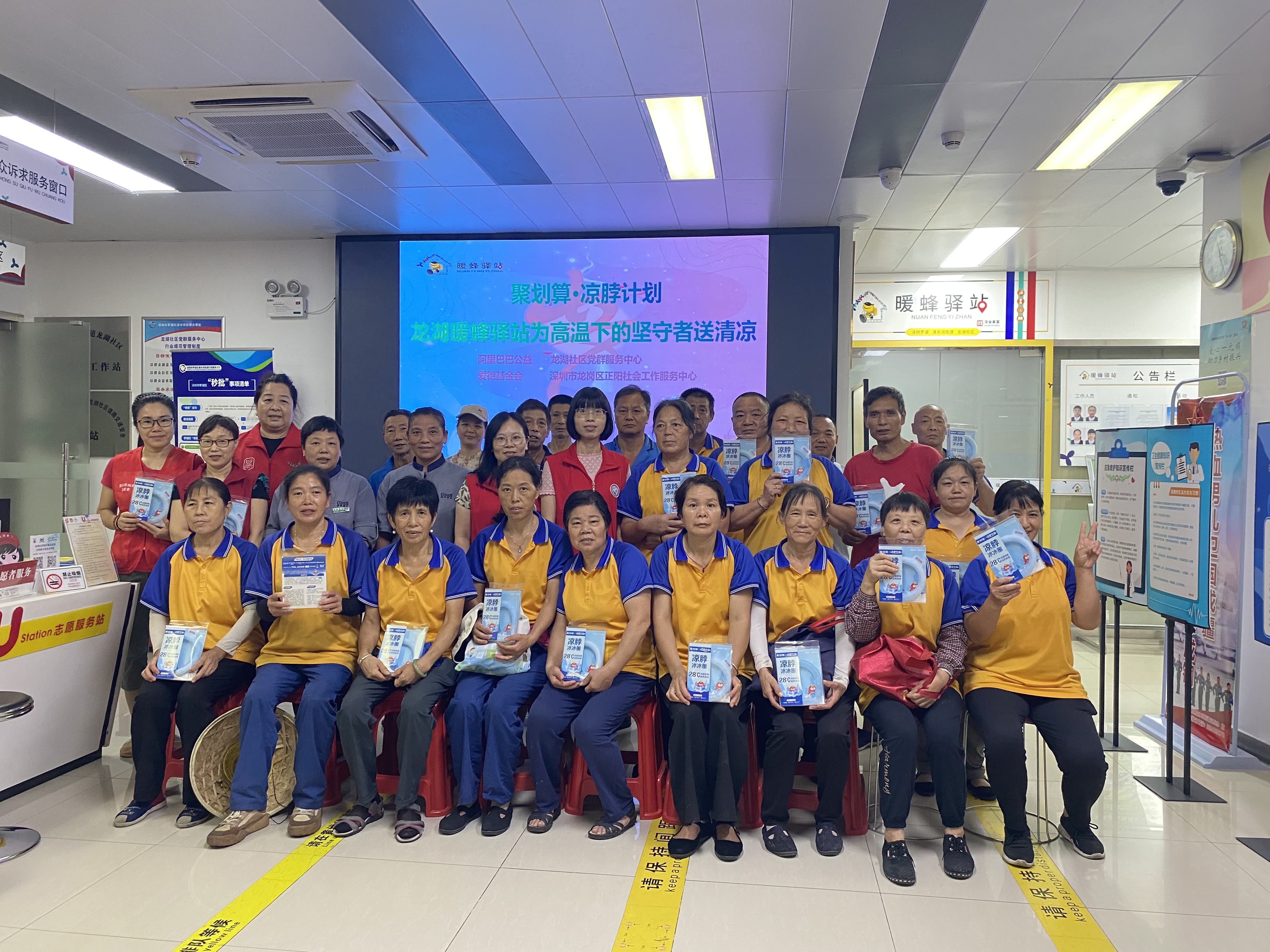 2023年8月23-25日,在龙湖社区党委的领导下,清水河街道龙湖社区暖蜂驿站、龙湖社区党群服务中心联合聚划算“凉脖计划”阿里巴巴公益、爱德基金会、深圳市龙岗区正阳社会工作服务中心,为龙湖社区100名建筑工、外卖骑手、环卫工人等户外劳动者送出一份移动清凉——凉脖冰冰圈,向他们表达敬意的同时,也为他们送去丝丝清凉,感谢高温下的坚守者。