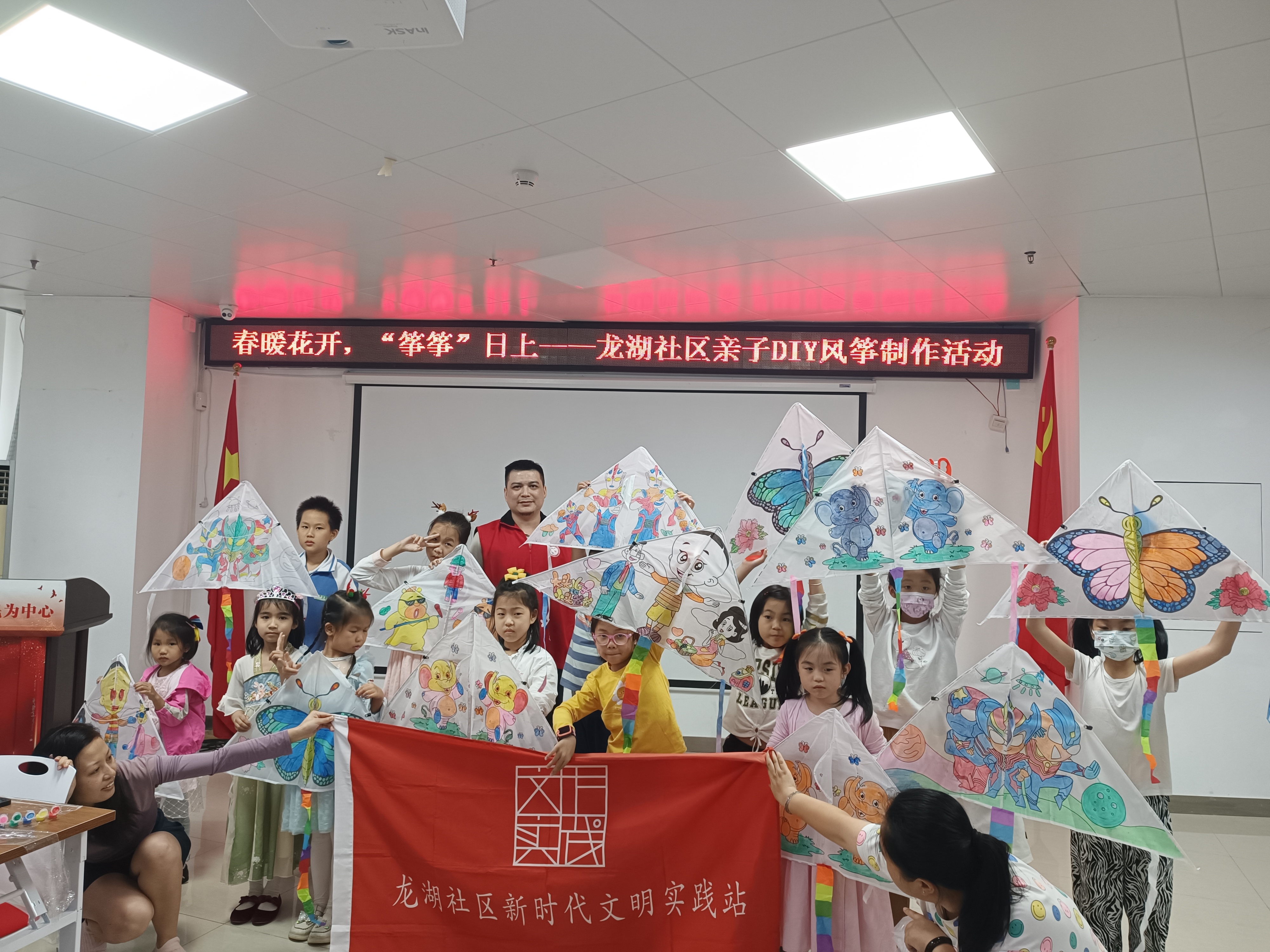 清水河街道龙湖社区开展DIY手绘风筝亲子活动