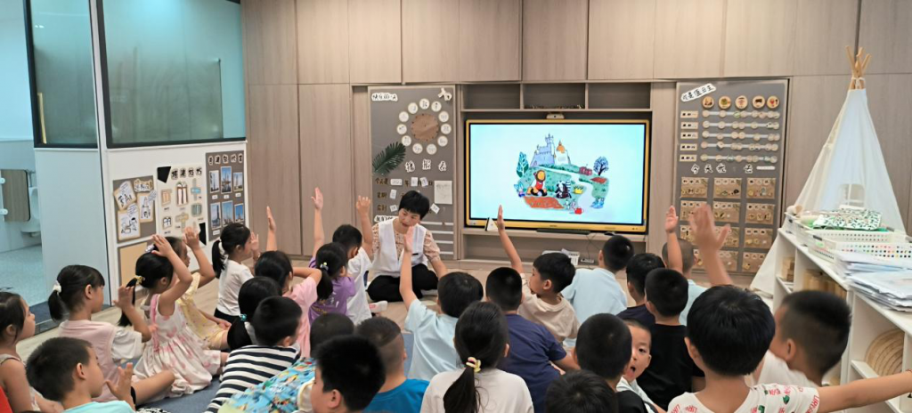 在故事会上,绘本讲师用富有表现力的声音和生动的动作,生动展现了故事中的场景与人物。孩子们聚精会神地聆听,仿佛置身于雷纳德国王与泰迪熊的世界。