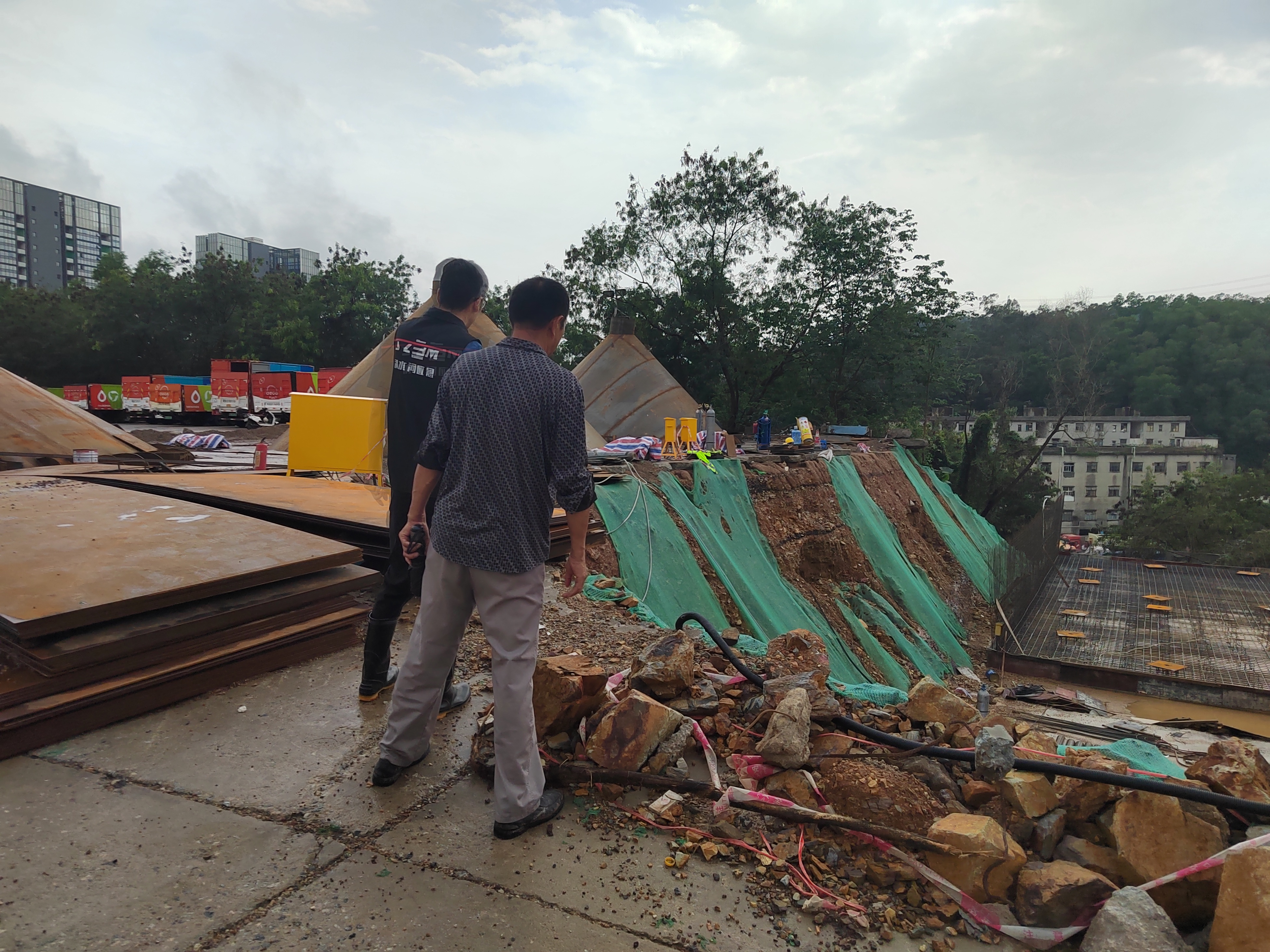 龙湖社区汛期巡查辖区工地、边坡、易积水点